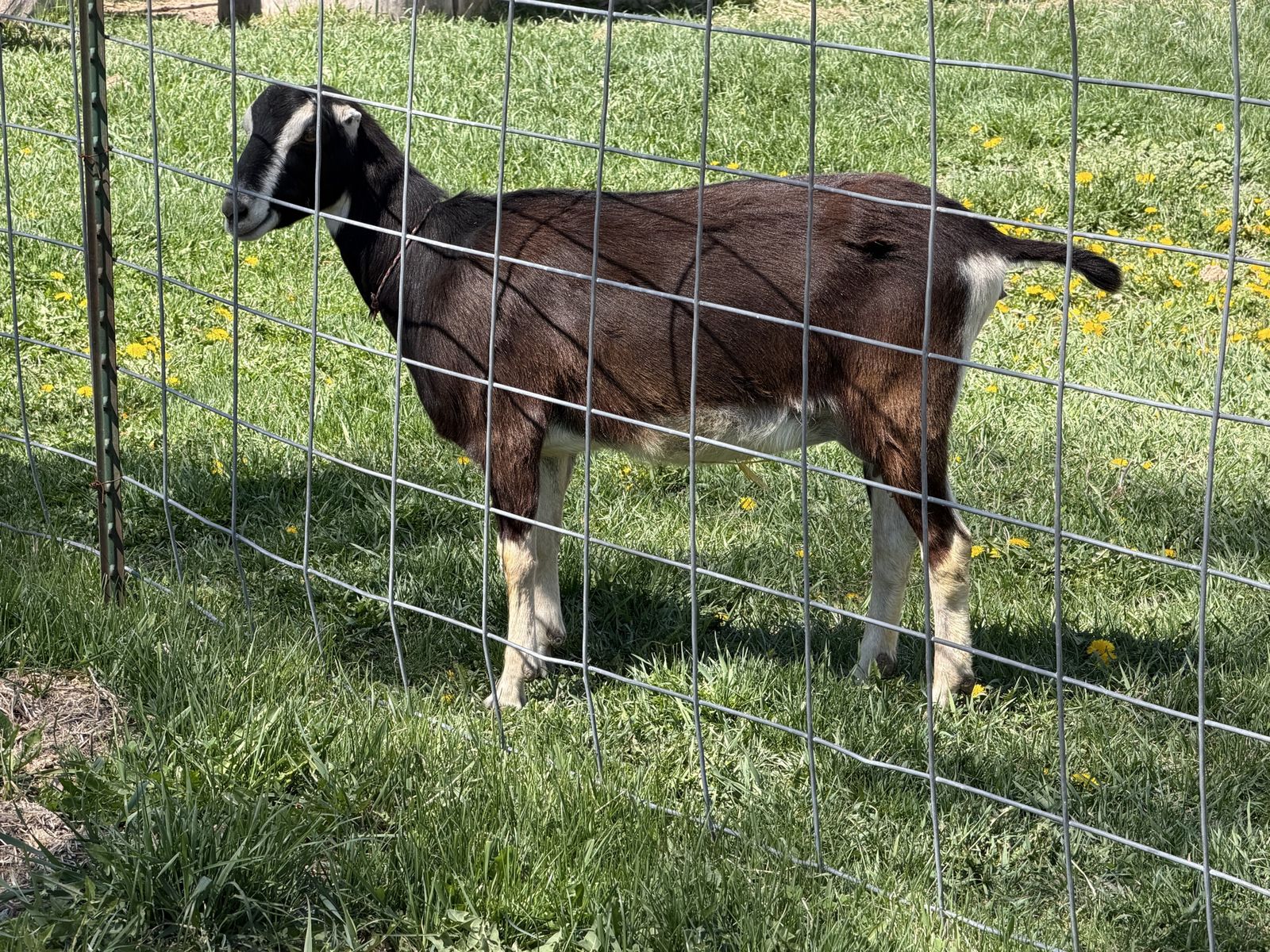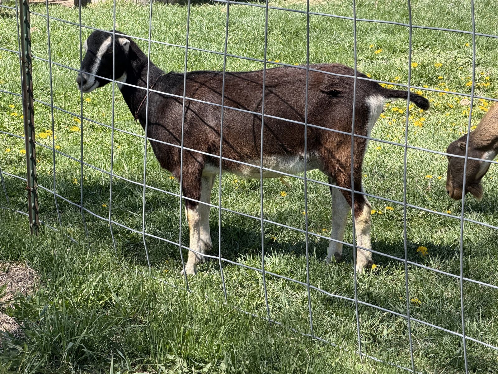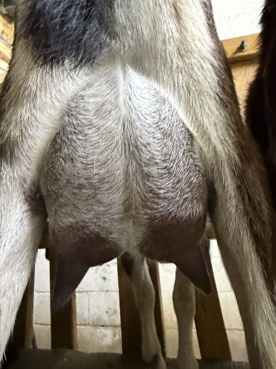 very friendly comes from CAE clean tested herd. up to date on vaccinations and hooves trimmed just recently in the last month milking 6.7 pounds of milk is a milking yearling she freshened almost two months ago she can be hand or machine milked she’s very friendly and easy to handle she can come with adga papers CASH OR VENMO ONLY!!!