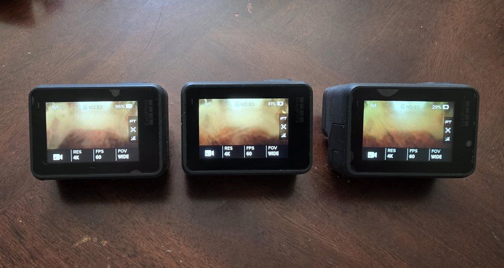 All in great condition. Still power on and off and record as normal. All touch screens function as normal. Some bubbles on screen protectors (see photo) but does not affect function at all. Lenses are all clean and scratch free. Used primarily as in car cams for reality tv so they've avoided the wear and tear of normal gopro use.
