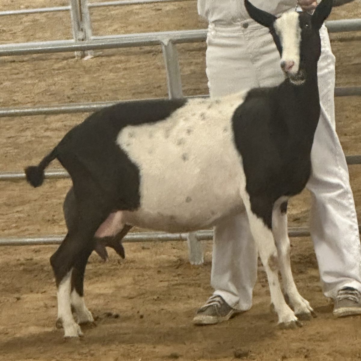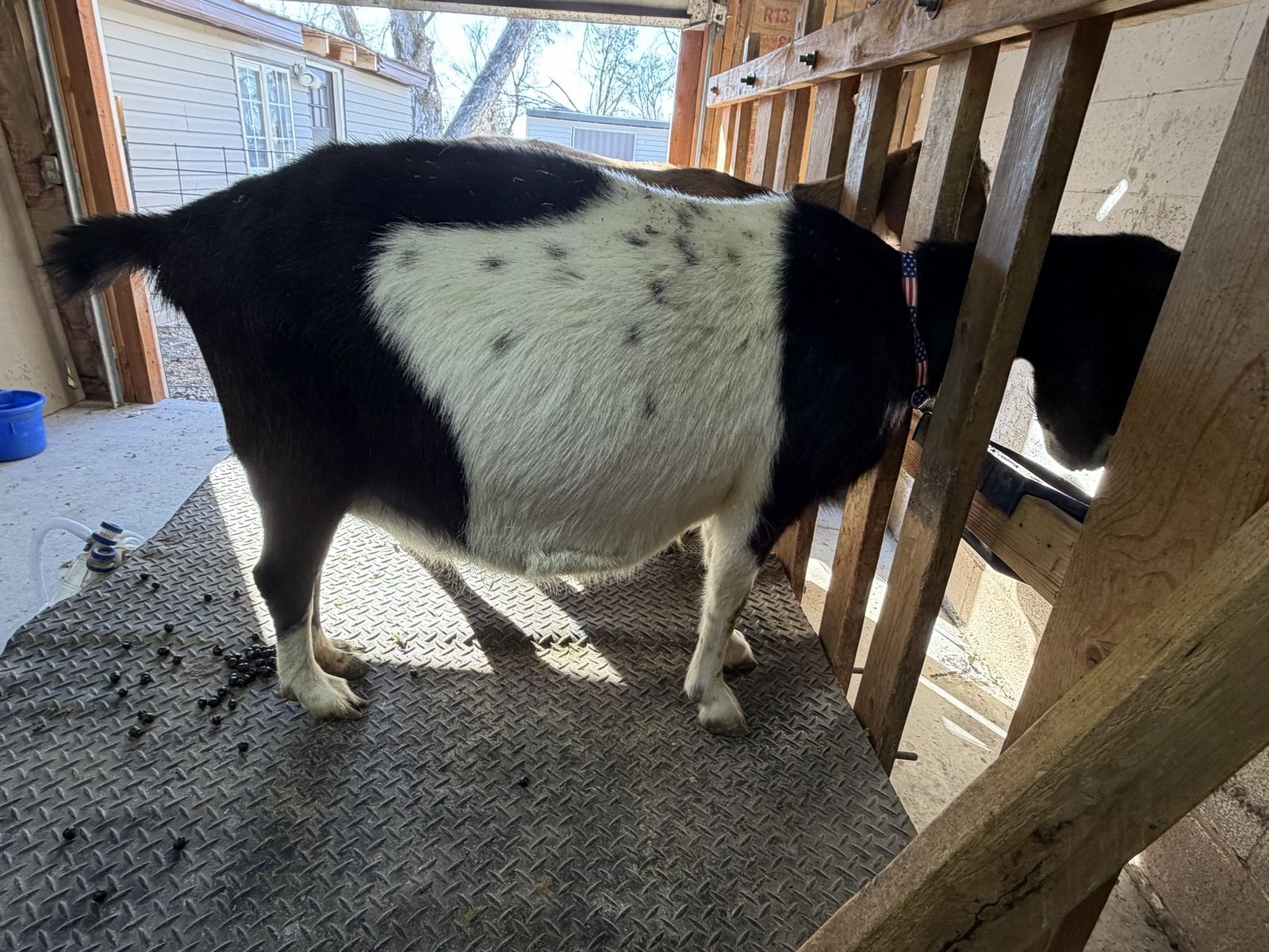 Venmovery friendly comes from CAE clean tested herd. up to date on vaccinations and hooves trimmed just recently in the last month milking very well for only being in milk the last month is a milking three year old third freshener she is only a month fresh but is giving 12.7 pounds of milk she can be hand or machine milked she’s very friendly and easy to handle she can come with adga papers she kidded with quads so she’s a little thin but is gaining it back quickly. CASH OR VENMO ONLY!!!