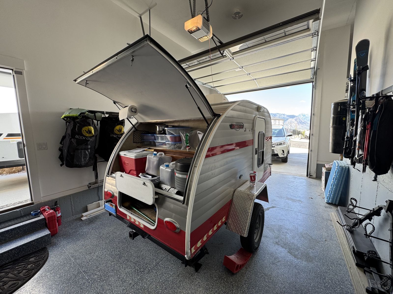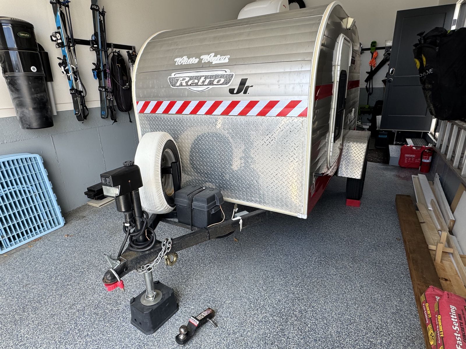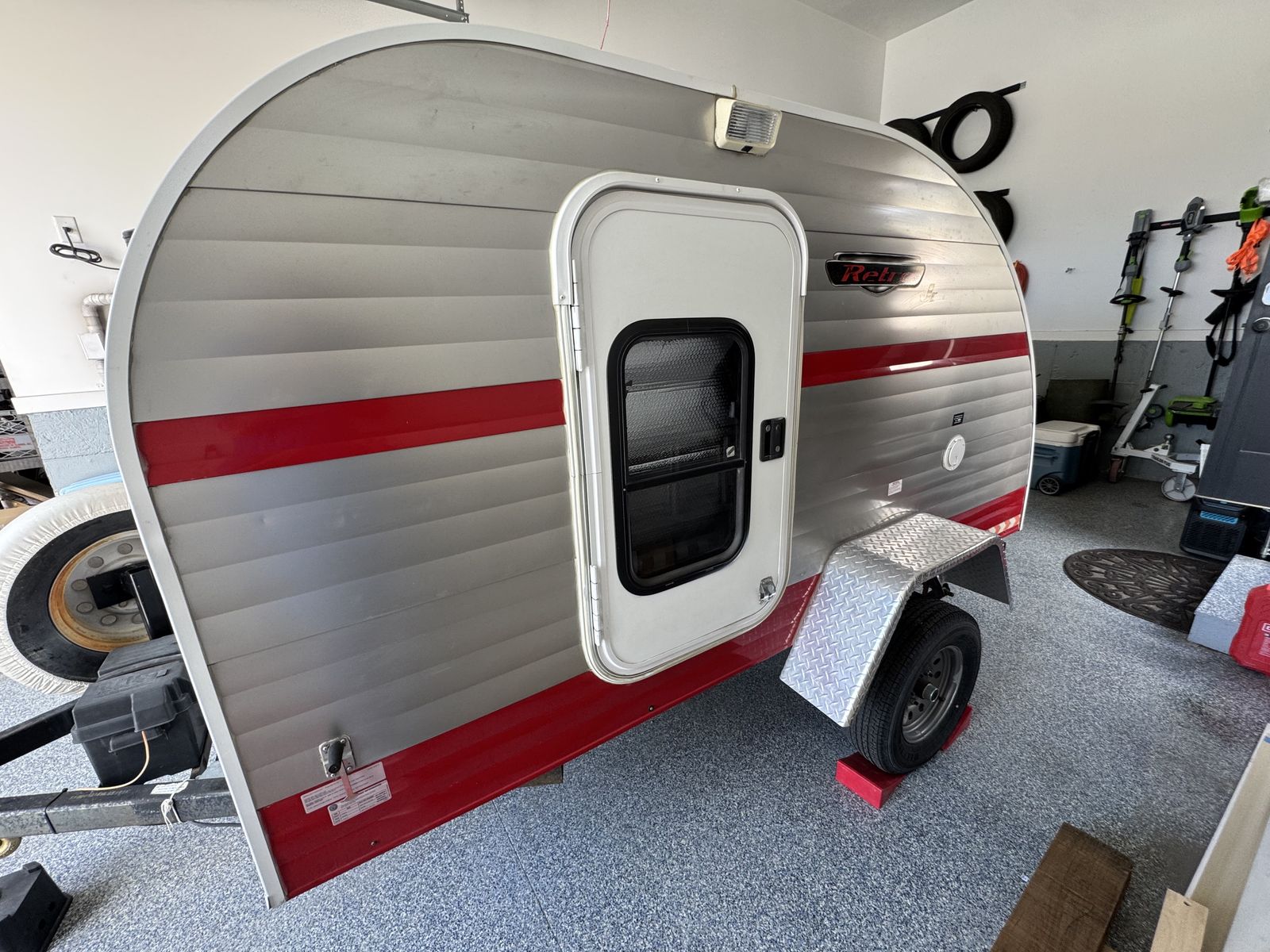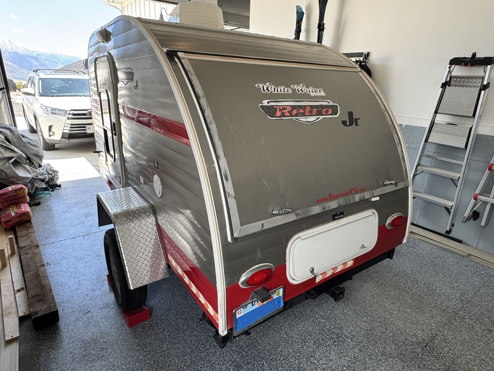 2014 Revierside Whitewater Retro Junior Tear Drop Camper. Many upgrades and extras included. We camped in this trailer several times last summer and had zero issues. We have camped in paid camprounds and have boondocked on BLM land with this trailer and have really enjoyed it. Pulled with a Toyota Highlander and Subaru Outback - very lightwight and nimble.