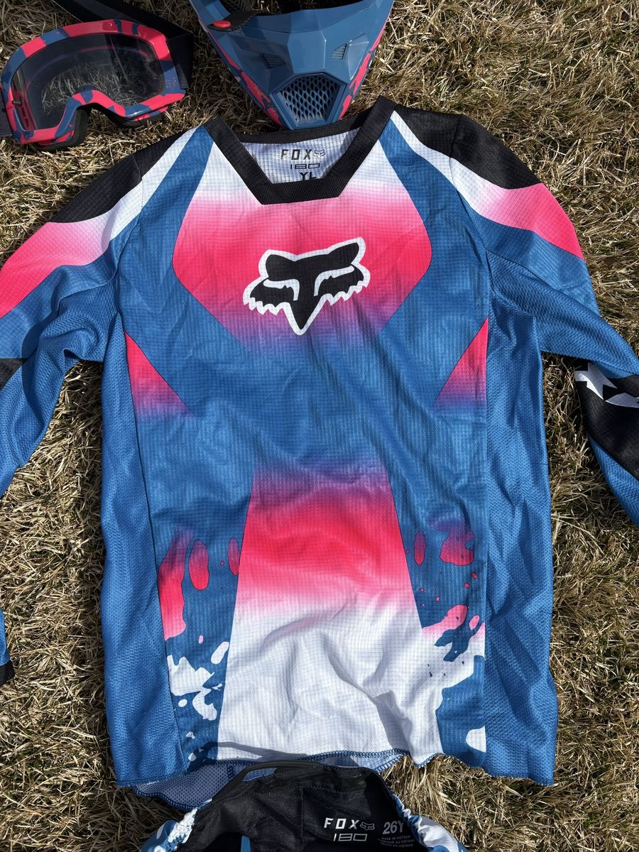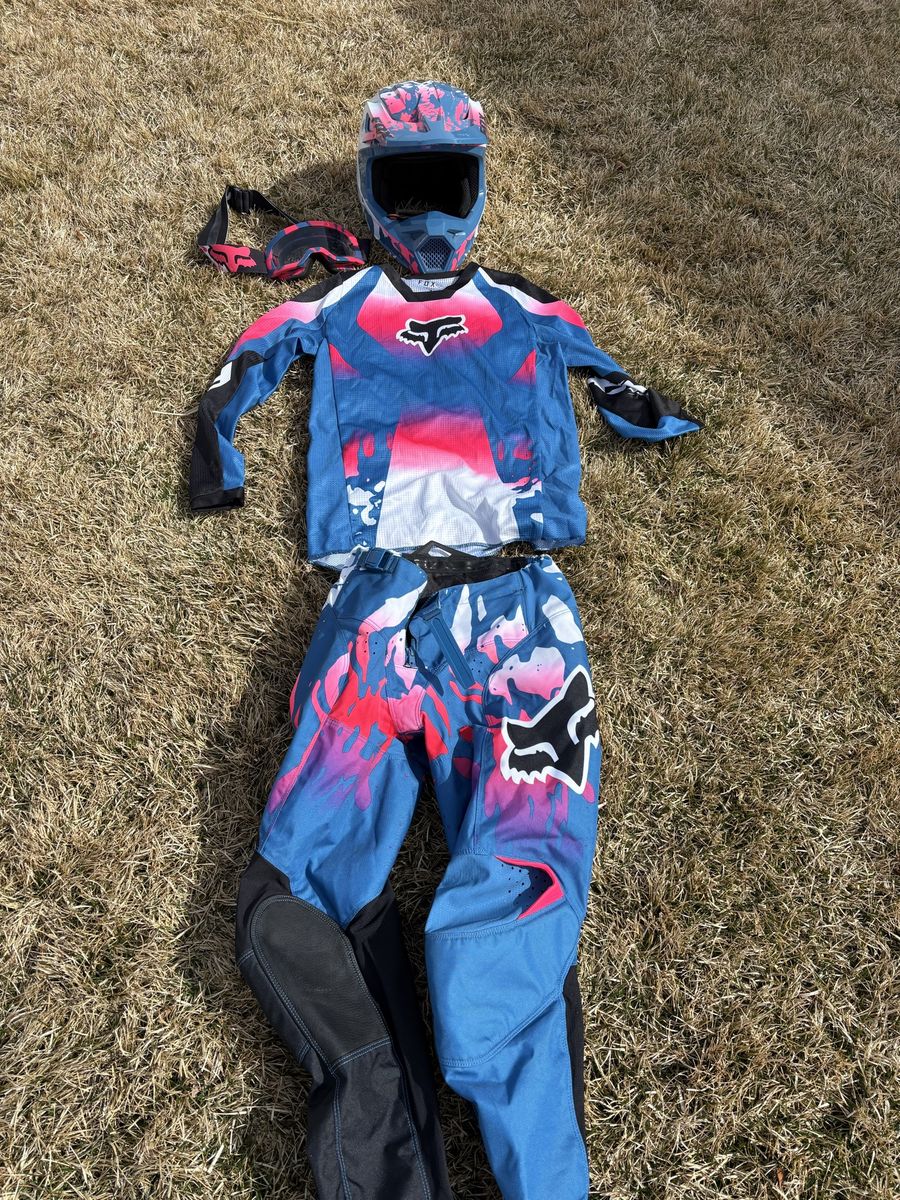 VenmoFox racing helmet youth large, goggles, jersey and pants. It was one worn once. Excellent condition. I would like to sell as a set but may separate if needed.