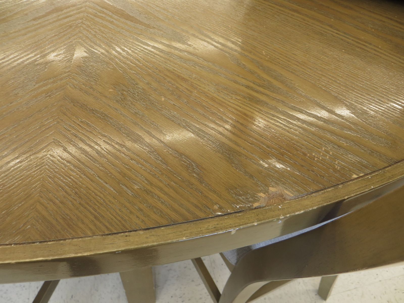 We have one Wellington 7-Piece Counter Height Dining Table Set 1653373 #106118 available. This dining set has been used and comes out of box. The table and chairs have a few minor scuffs and scratches (see attached photo of the table)