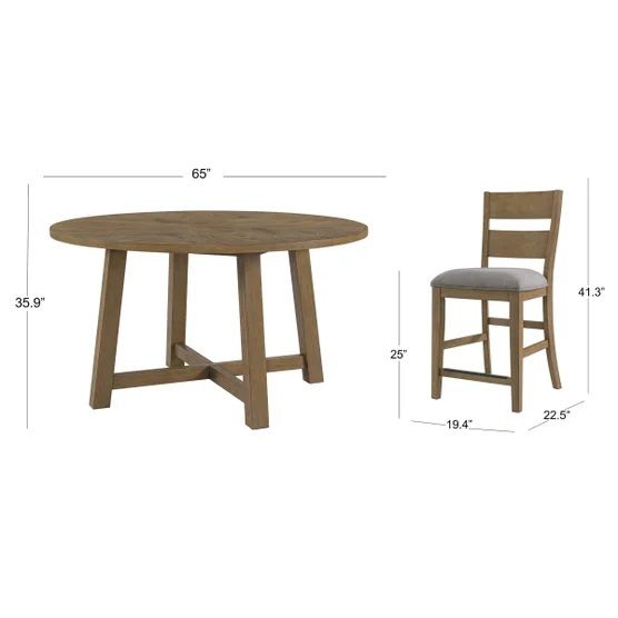 Entertain and dine in style with the Wellington 7-Piece Counter Height Dining Set. The Wellington is made of oak veneer and solid rubberwood, completed in a hand applied, multistep modern tobacco brown finish. This table has ample dining space as well as plenty of room for 6 matching counter height chairs. The chairs are solid rubberwood with fabric upholstered seats. Wellington works great for casual dining or for a recreational room. Enjoy the Wellington 7 Piece Dining Set for many different occasions.