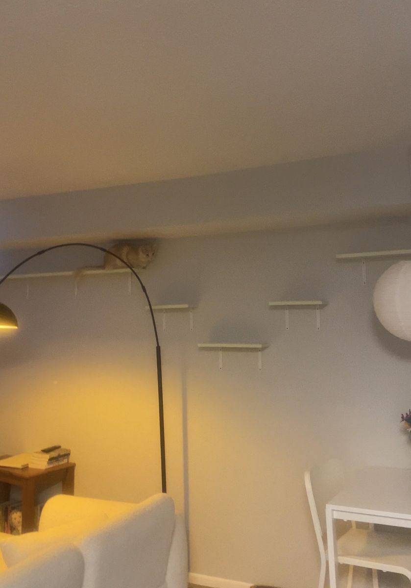 Set of 6 hand made wall shelves for cats. All of them are 6in wide. 2 are 5ft long ($35 each) 2 are 16 in long ($15 each) 2 are 1 ft long ($10 each)