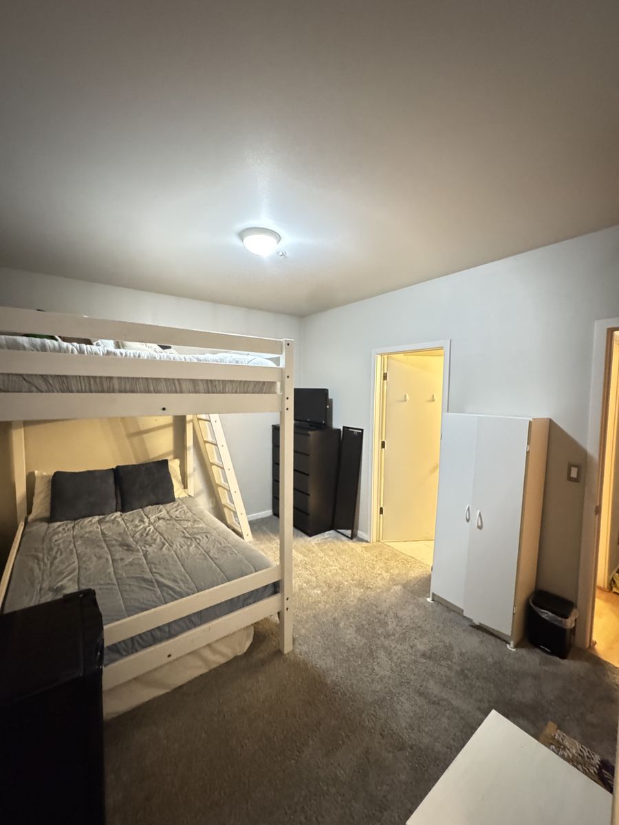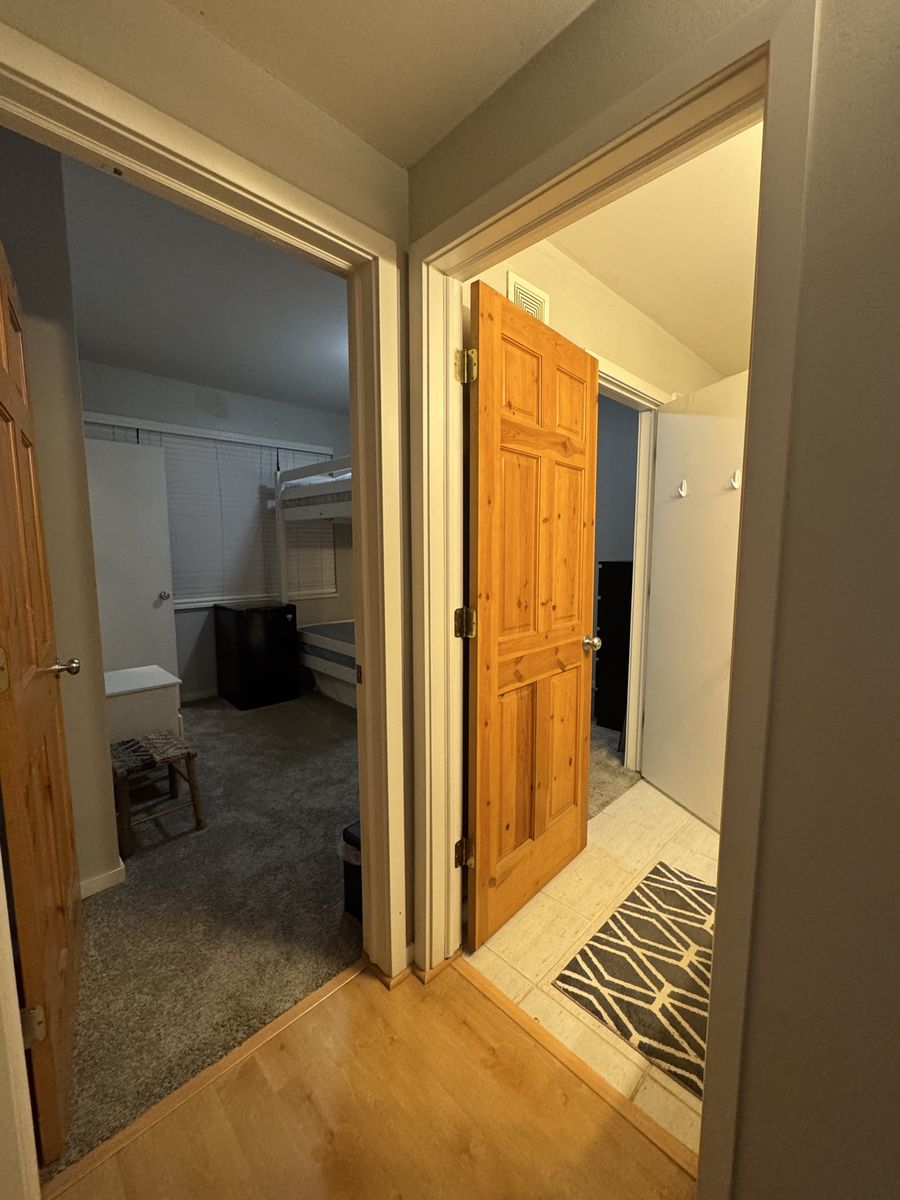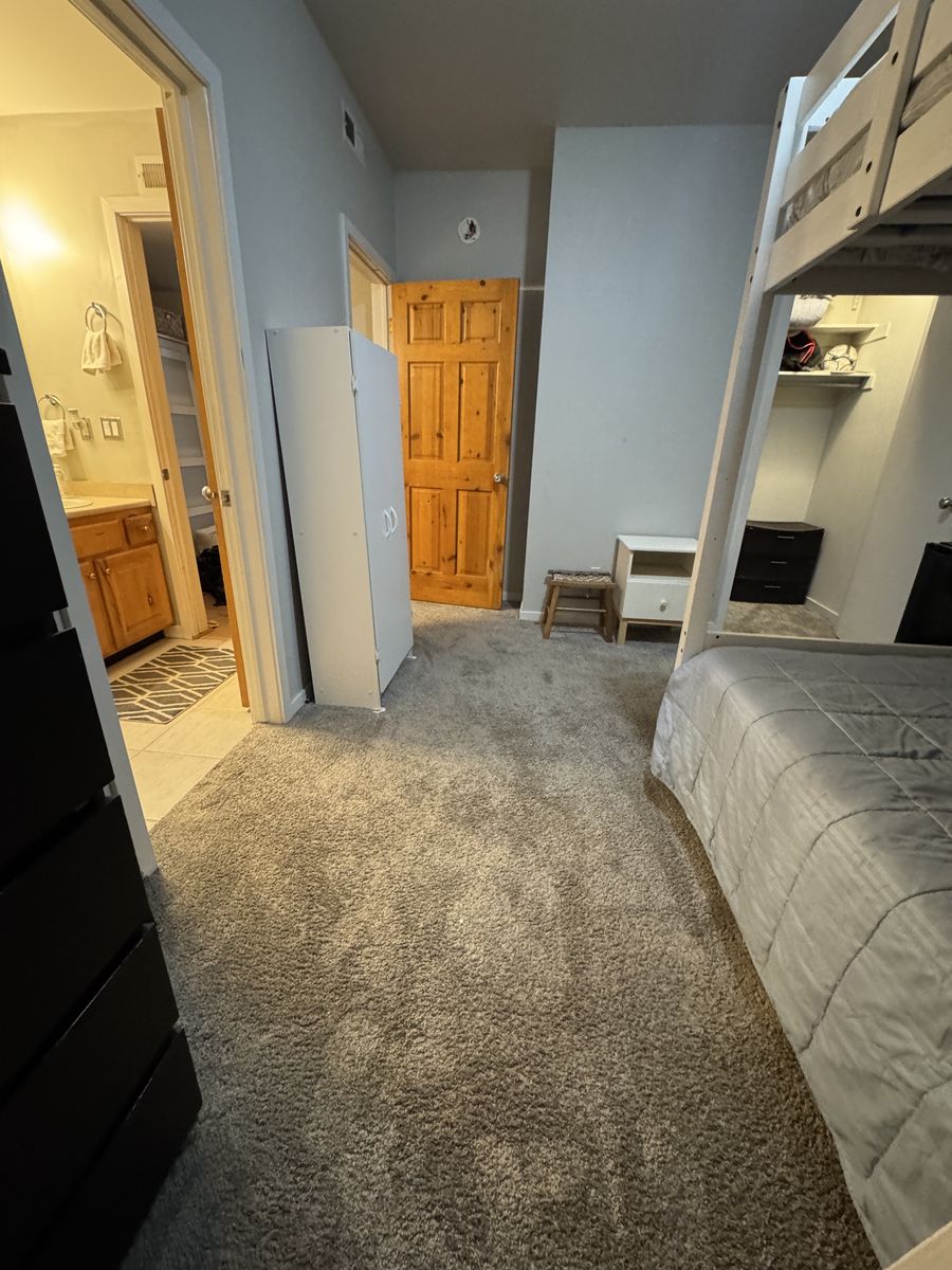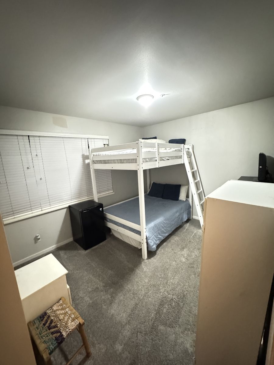 YOUR PRIVATE ROOM This bright, fully furnished bedroom is your own private retreat. It features a walk-in closet and an in-room mini fridge for your convenience. You also have direct access to a bathroom that is shared with only one other person.
