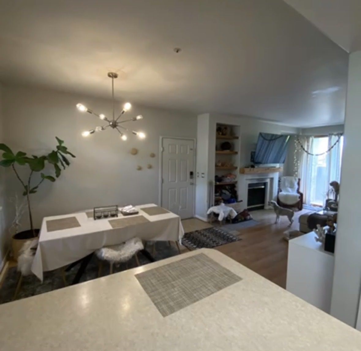 SHARED HOME AMENITIES The home offers a cozy shared living room with a gas fireplace, a fully equipped kitchen, and in-unit laundry.