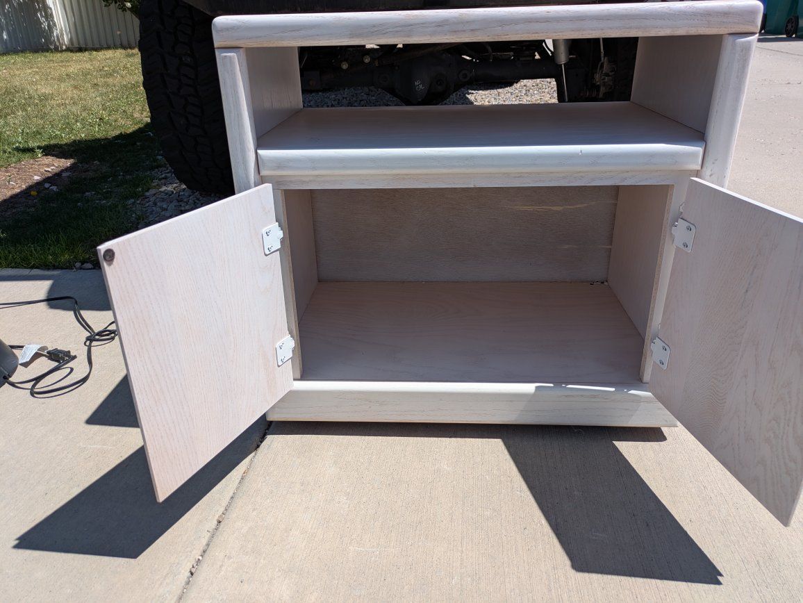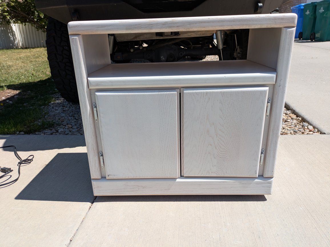 Venmorolling side table with cupboards and a slot for whatever. on Wheels. white