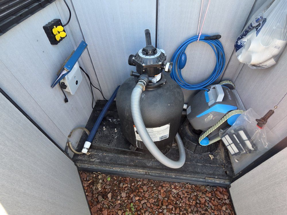 Pure Line 1.5 HP Dual Speed pump (2 yrs old) Pentair Arias 400 Sand Filter with Dr. Drydens Activated Glass Media (dont have to change media for 15 years) (2 Yrs old) Dolphin Escape Robot pool Cleaner (2 yrs old) Pump shed to house all the Equipment (2 yrs old) Ladder (typical) (5 yrs old) Ladder (comfort and more stable) (4 yrs old) Steps (7 yrs old) pole (5 yrs old) 15' Round Above Ground Pool (5 yrs old) You must pick-up no delivery available. Text for questions cash only!!!