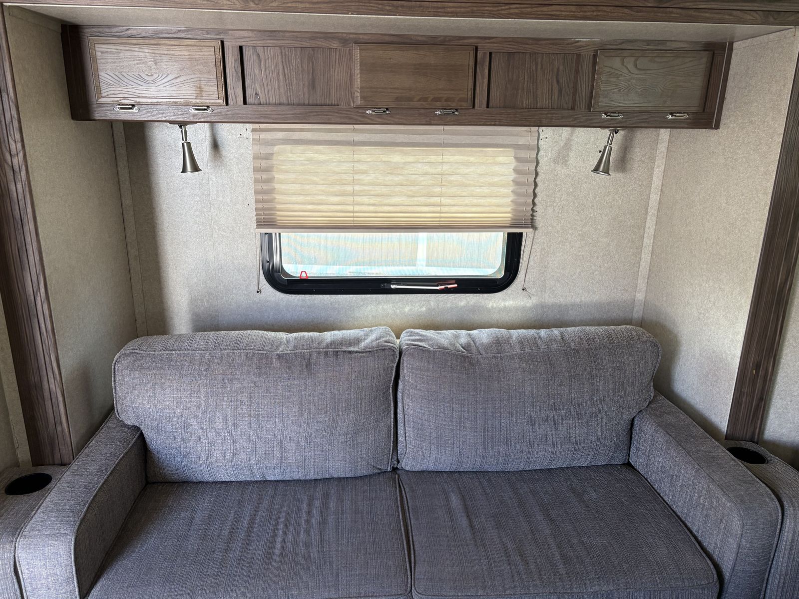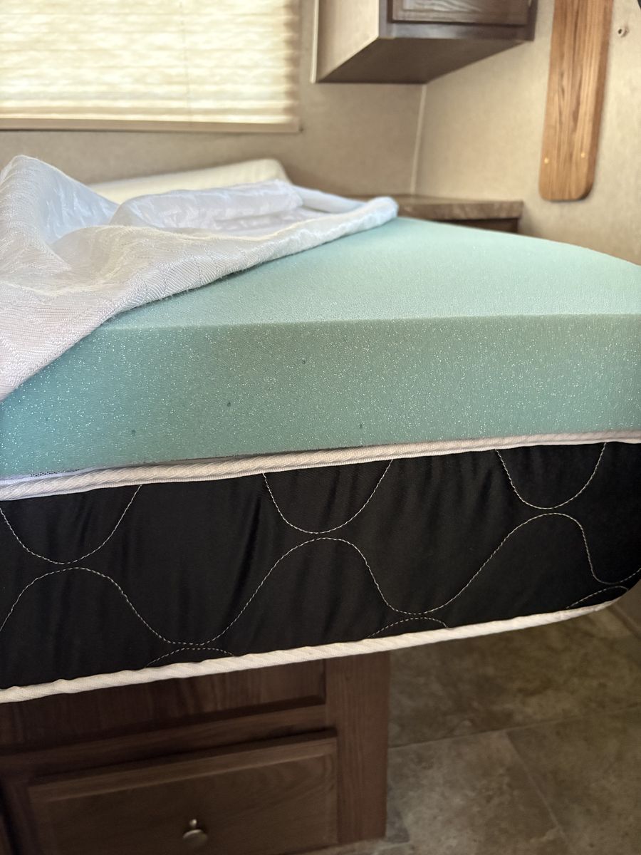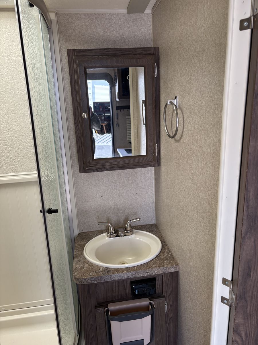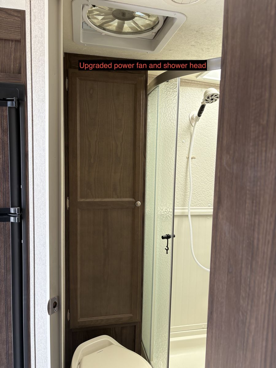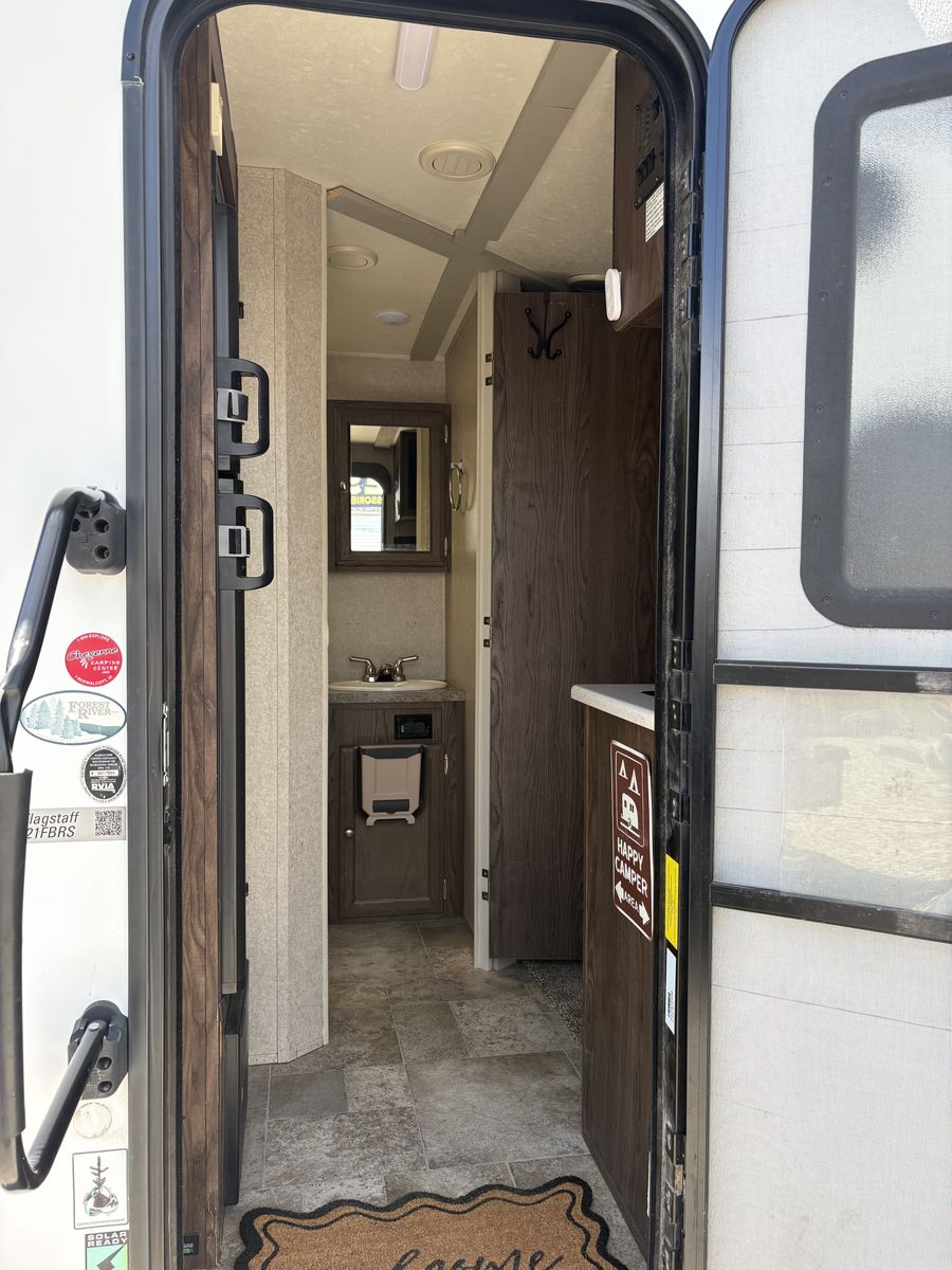 VenmoThis trailer has a salvage title. The previous owner drove under something too low and took the A/C off the roof. The roof has been repaired/patched but a new A/C unit was NOT installed. I put a powered fan over the bed and upgraded the power fan in the bathroom. With the fans and opening windows we have never wished we had A/C. This is a great trailer that tows well and is easy to get into smaller camp sites. All appliances work perfect. The awning was showing some weathering so I put a few rows of gorilla tape on the part of the awning that sits in the weather. Has two upgraded AGM 100 amp hour batteries.