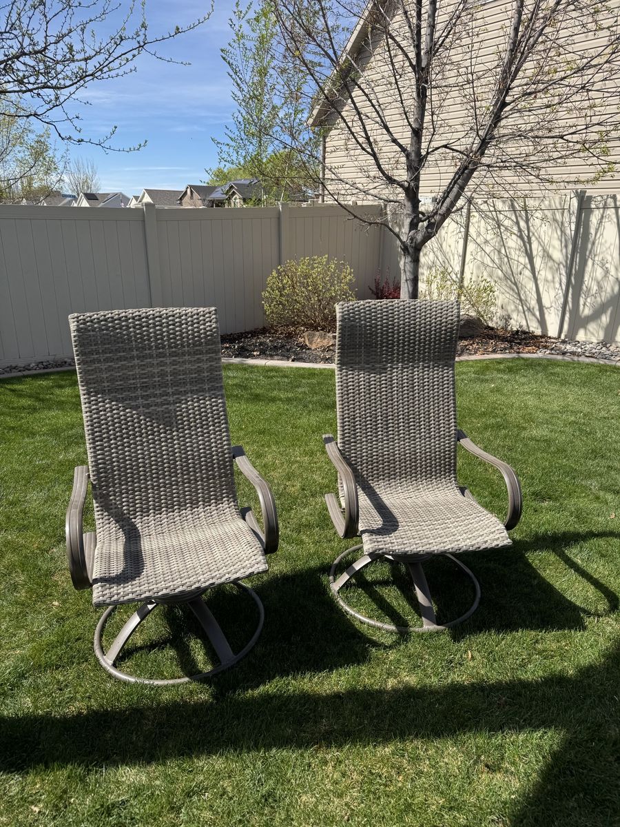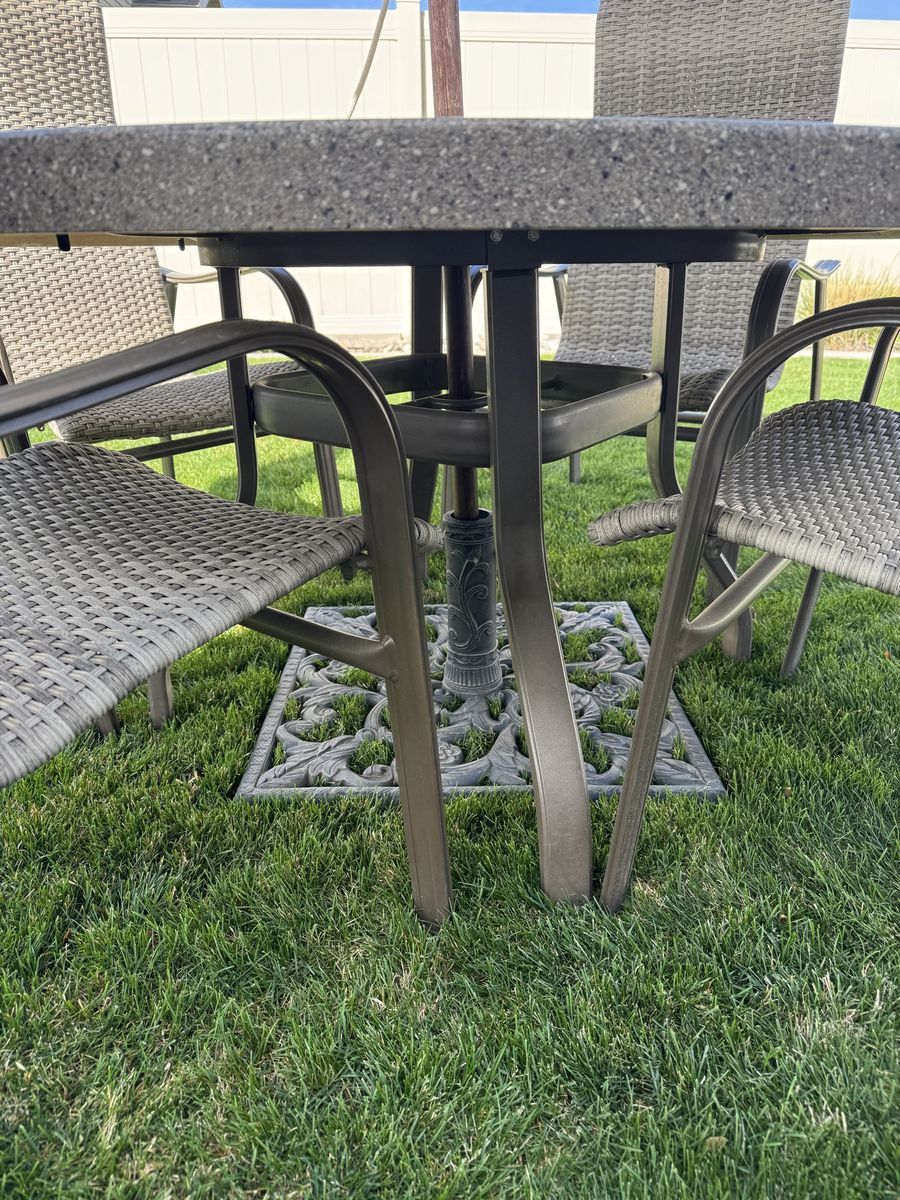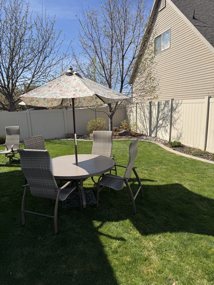 VenmoThis was given to us when a friend was moving. We already have furniture, so we are selling it. It was always stored indoors, is in excellent condition, and does have floral cushions that can go with it. Includes 4 chairs, 2 swivel chairs, table, umbrella, and umbrella base. Was purchased at leisure living in SLC. Please text or message with questions or offers.