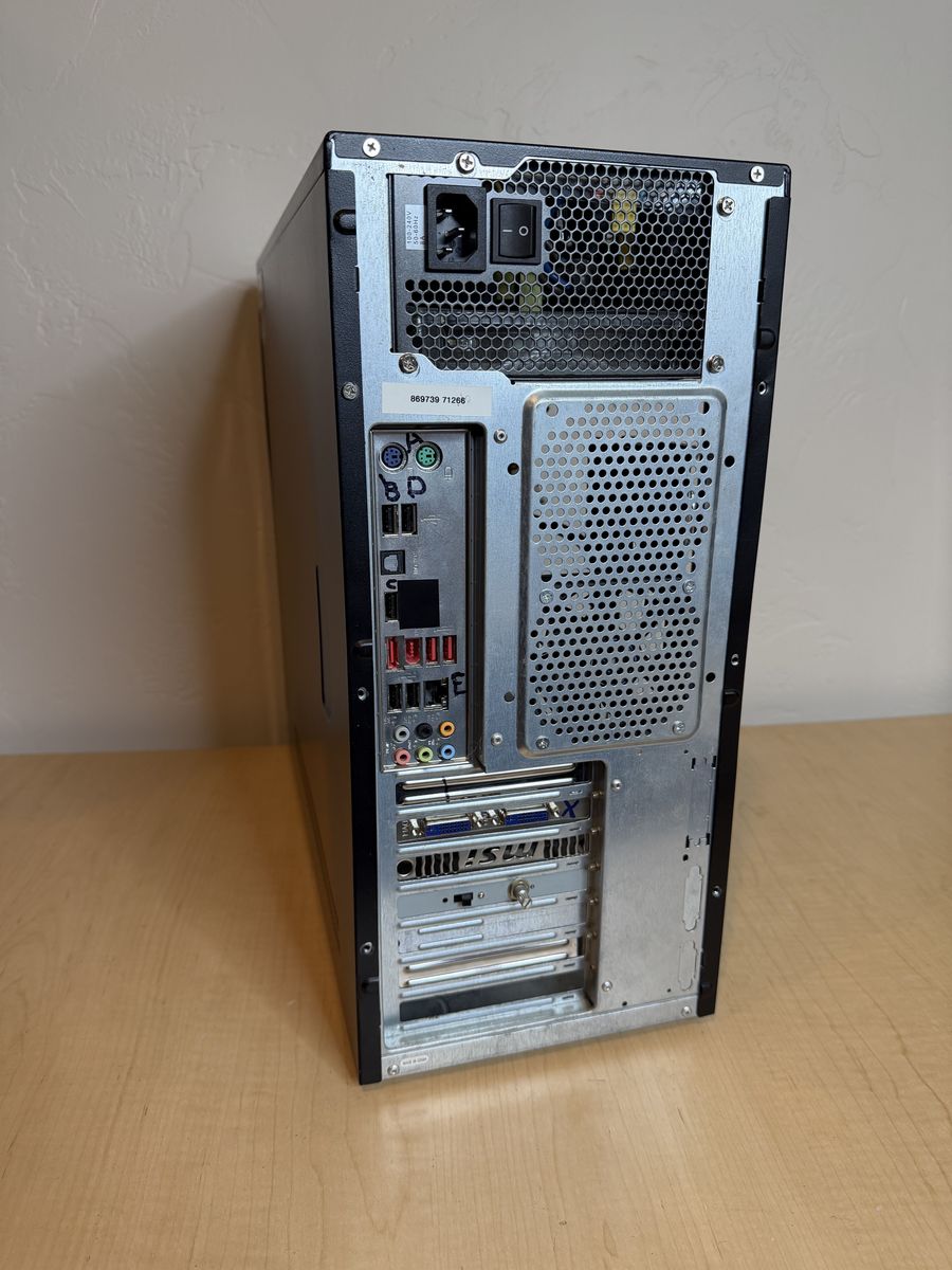 This is a SUPER DUPER OLD Desktop computer from 2009 that has an AMD Phenom II CPU. There is RAM, but no hard drive and no operating system. It does have a 550 Watt power supply and it does have an N250GTS Twin Frozr 1G OC video card. $30 cash OBO.