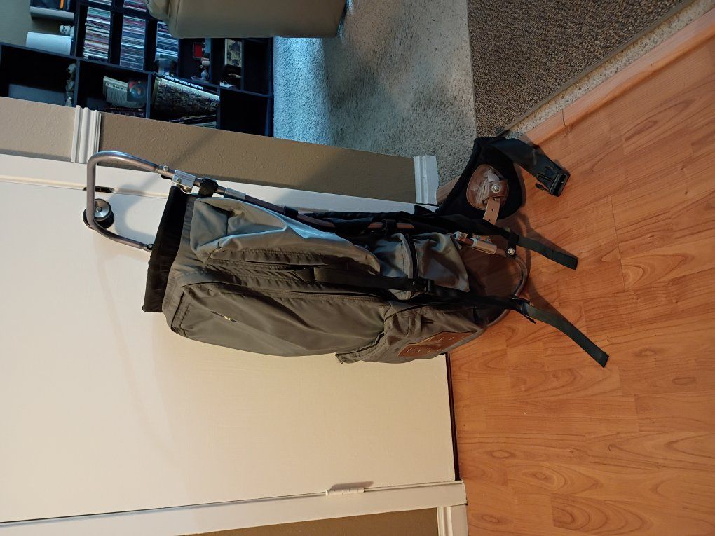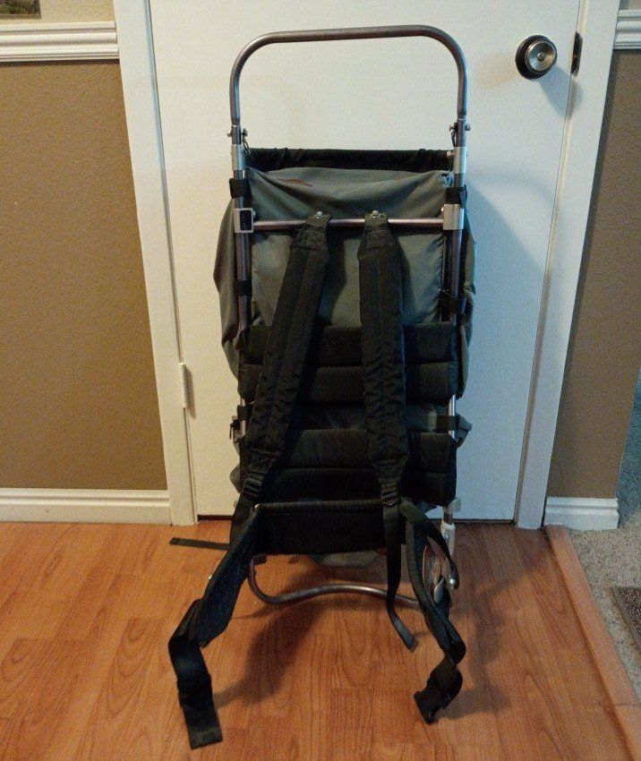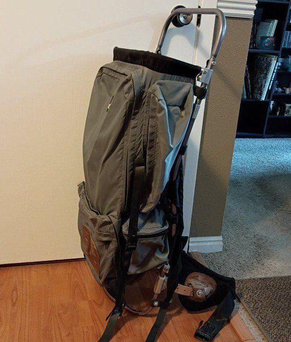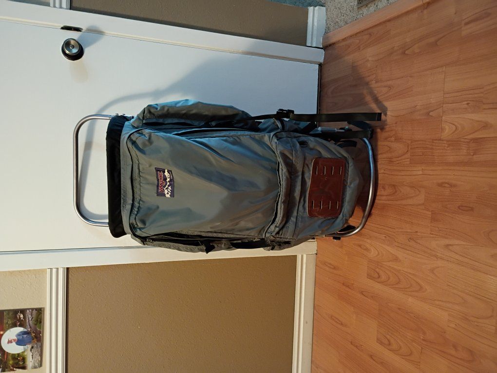 Jansport backpack with external frame and integrated waist belt. comes with rain cover