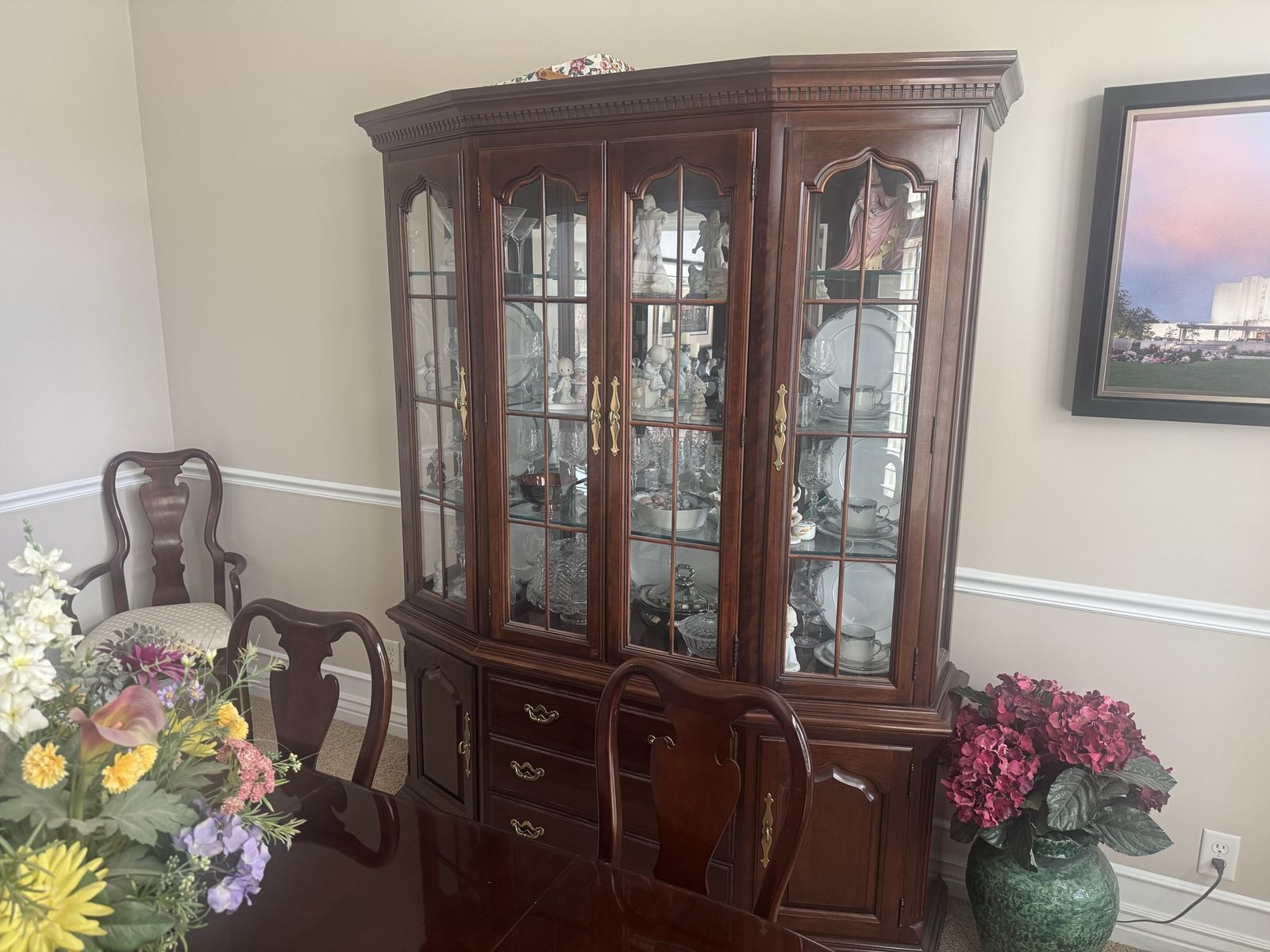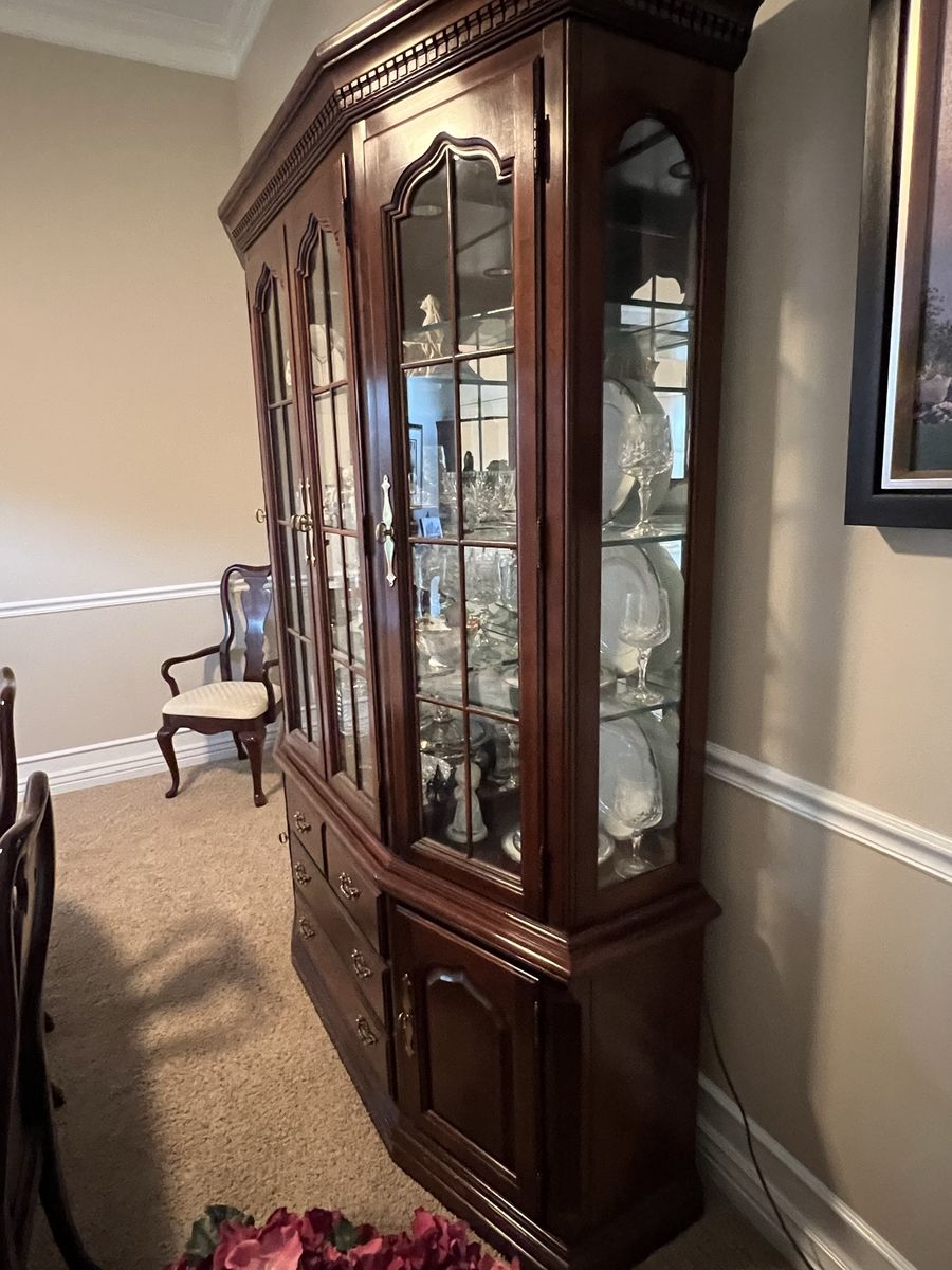 ZelleCherry dining room set with china cabinet and server. Eight chairs.