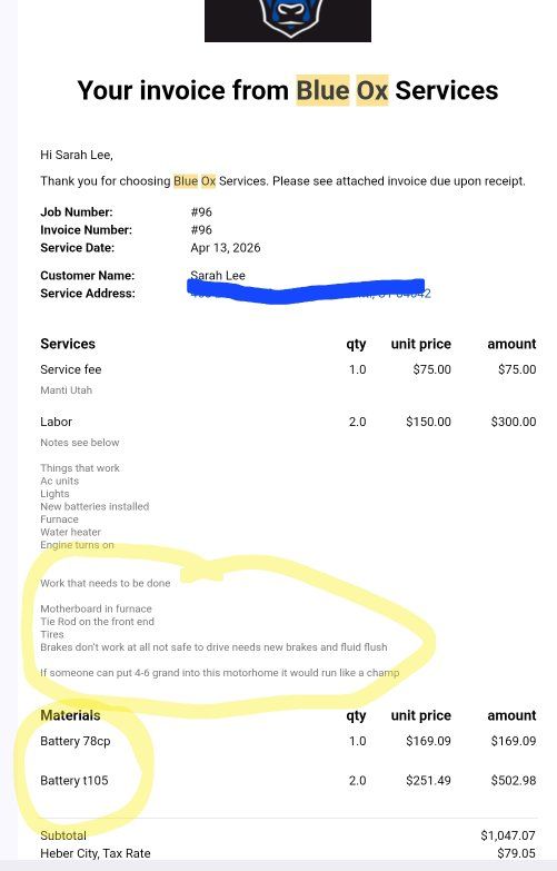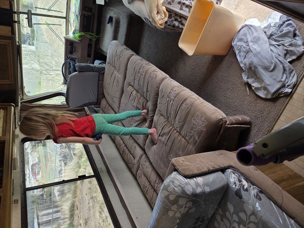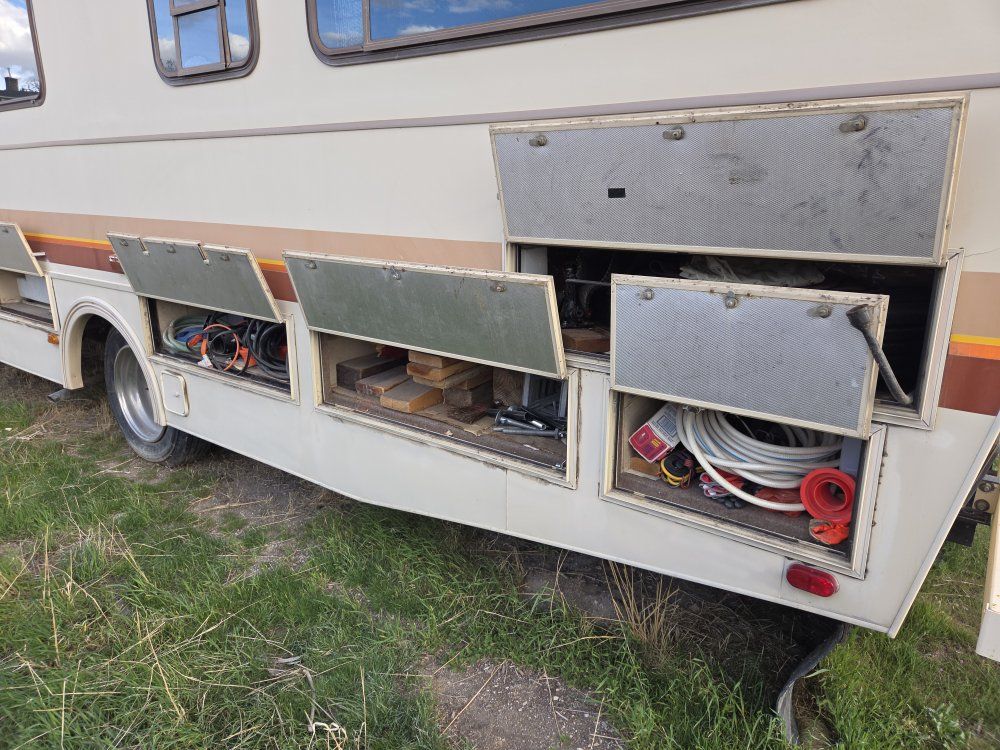 Only 55,351 miles Seat belts for 5, Sleeps 5 Band new furnace, thermostat Brand new batteries Camping and RV accessories in storage compartments included. Replaced lights, they work great. A/C cooler units work King size mattress is fairly new, in Great condition. RV was made for twin bunks. We added plywood to make it a king size. LOTS of storage compartments We paid mechanic to check evening out, see photo, he said everything works well except the breaks. Upholstery is in Great condition, I just didn't like the color and put covers on the seats.