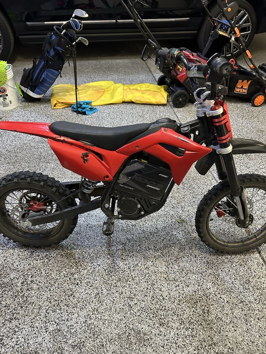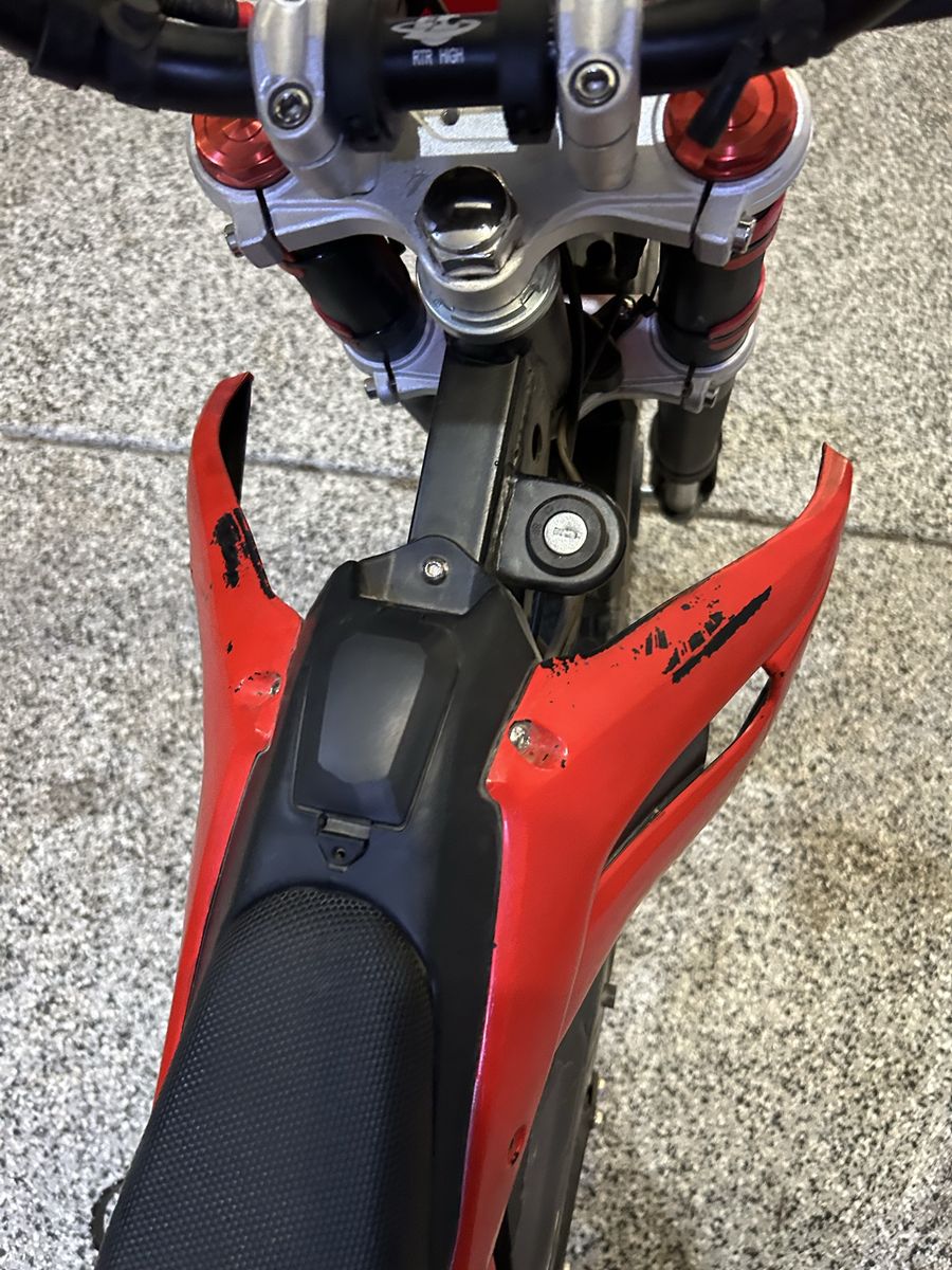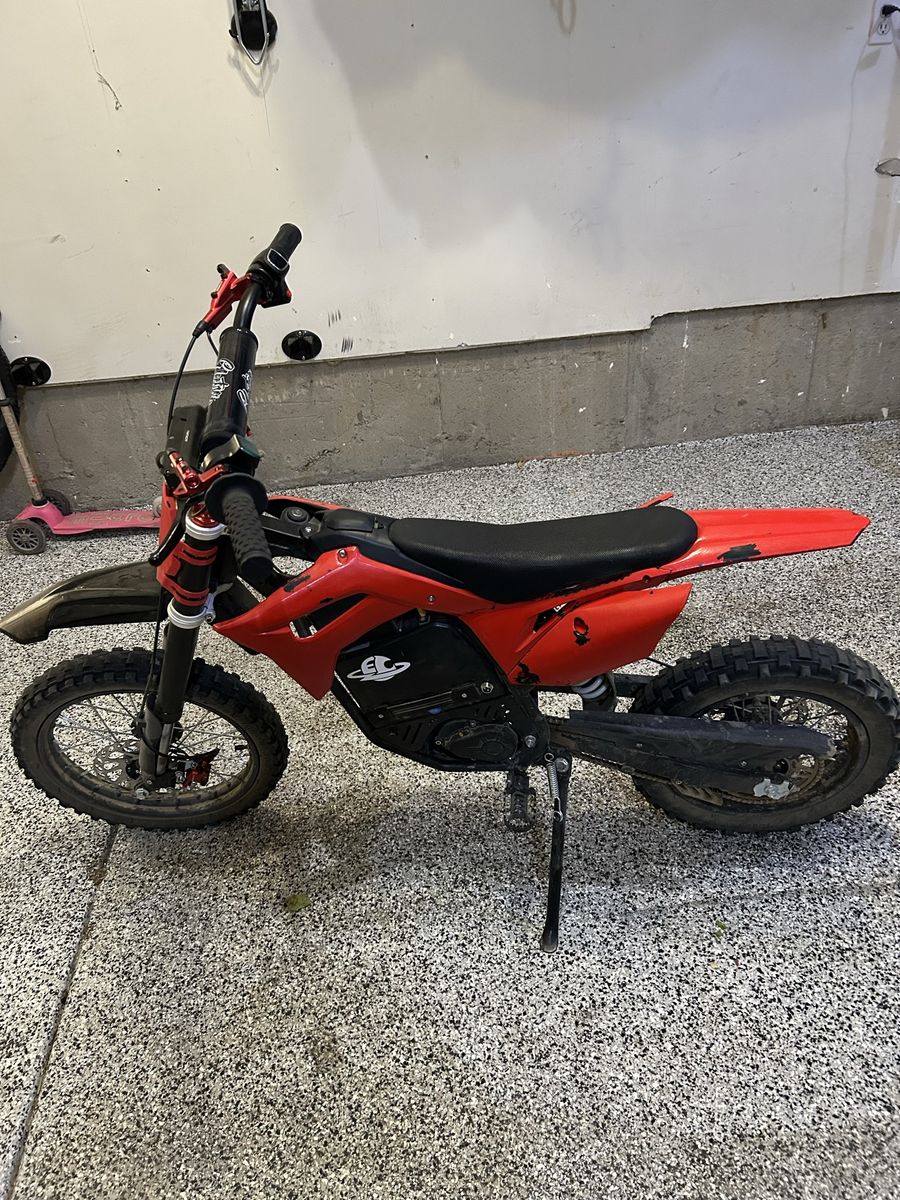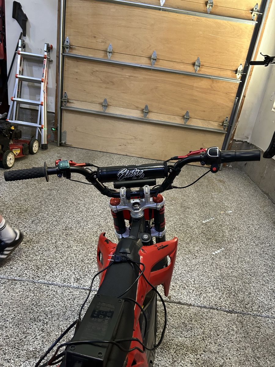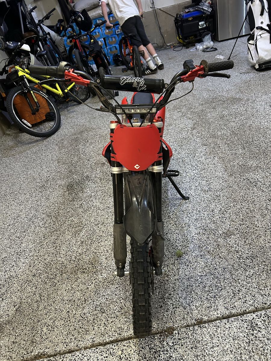 Modified this a lot I panted it all I put electro and co rise bars on it I have a red odd front number plate I also added a light battery is relatively new still works perfectly got it last August