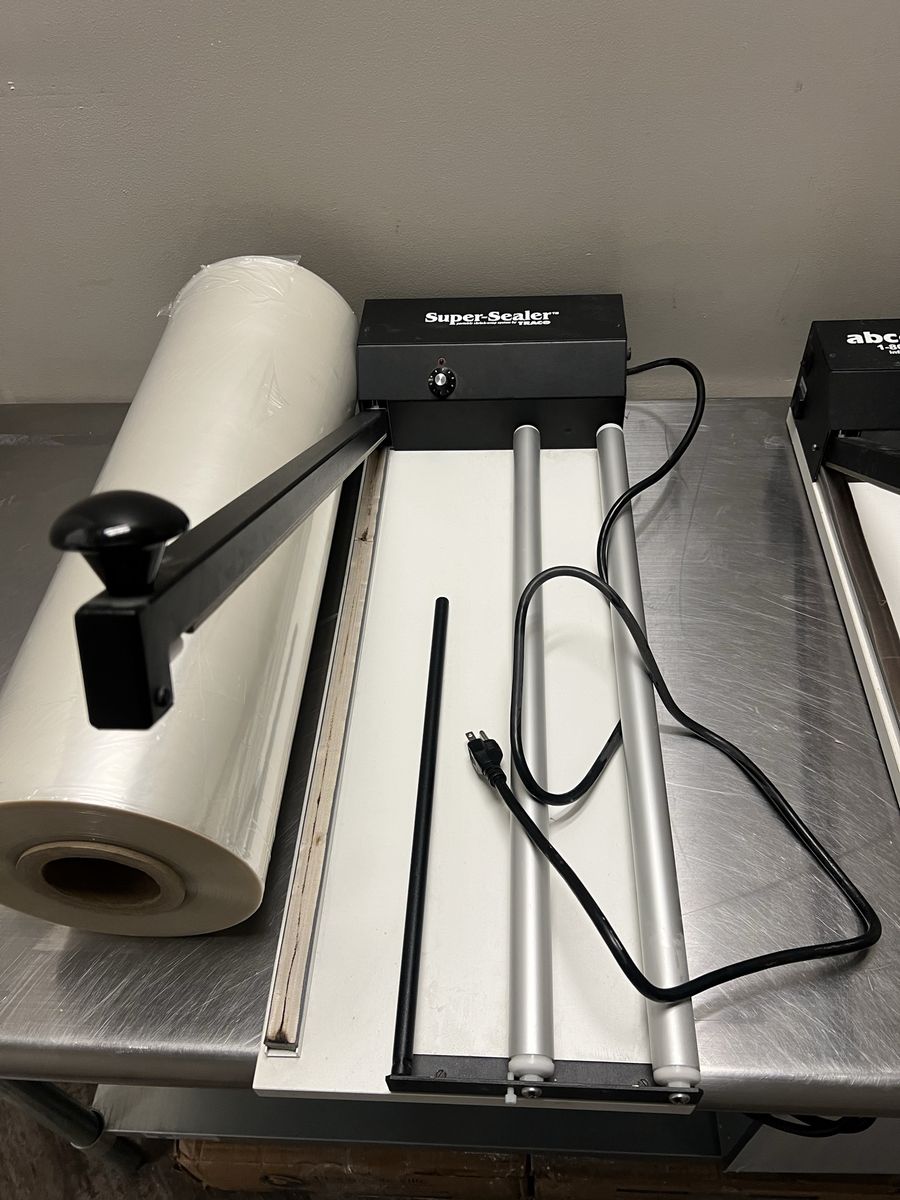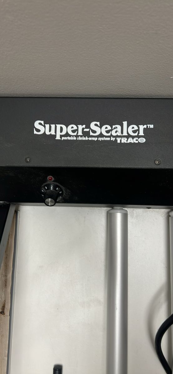 Complete Super-Sealer portable shrink-wrap system. This is a TRAC brand model SS-24DS. Includes two rolls of shrink wrap.