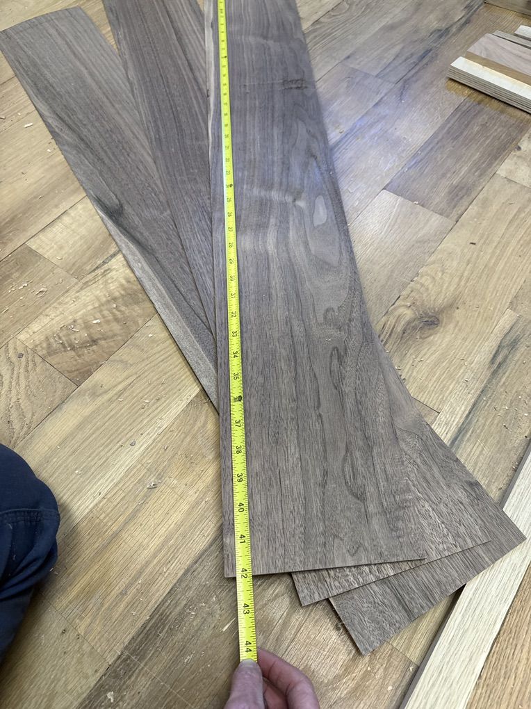 Black walnut veneer pieces about 42” long and between 5-7” wide. They were resawn on my bandsaw and are between 1/16” and 1/8” thick. Come pick the good ones! $2 a piece.
