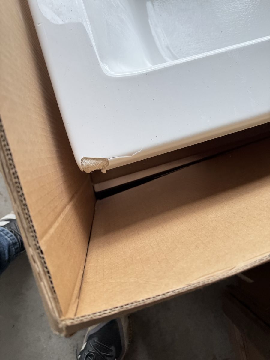 I am selling this tub. Has a small crack in the fiberglass - see picture. This is brand new- cracked the tub on the edge when installing. 36 inches wide. It is 900.00 new. Asking $200.00 Cell is 801-309-4777.