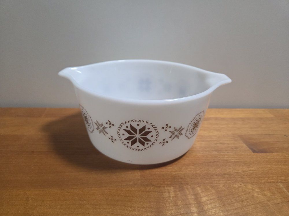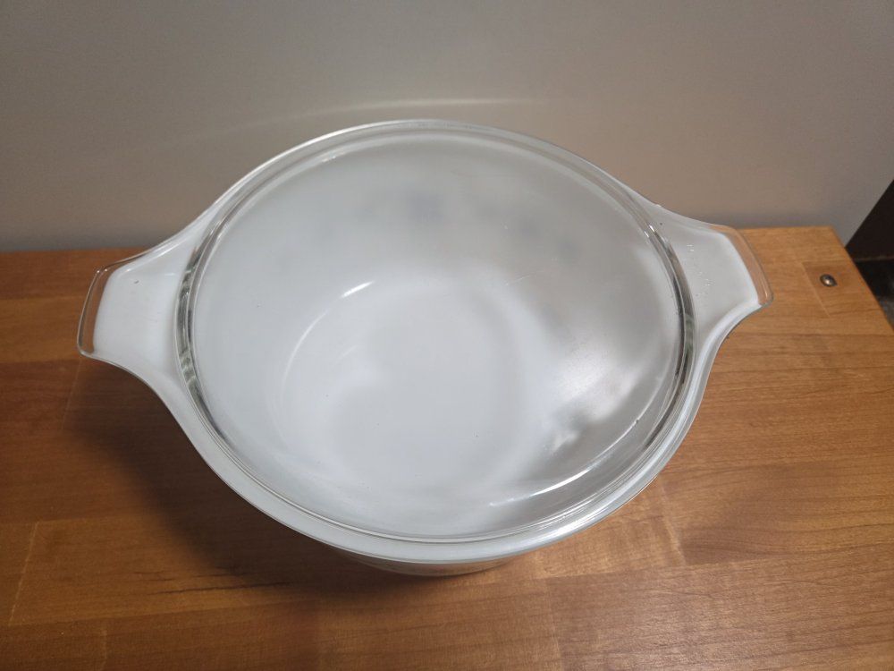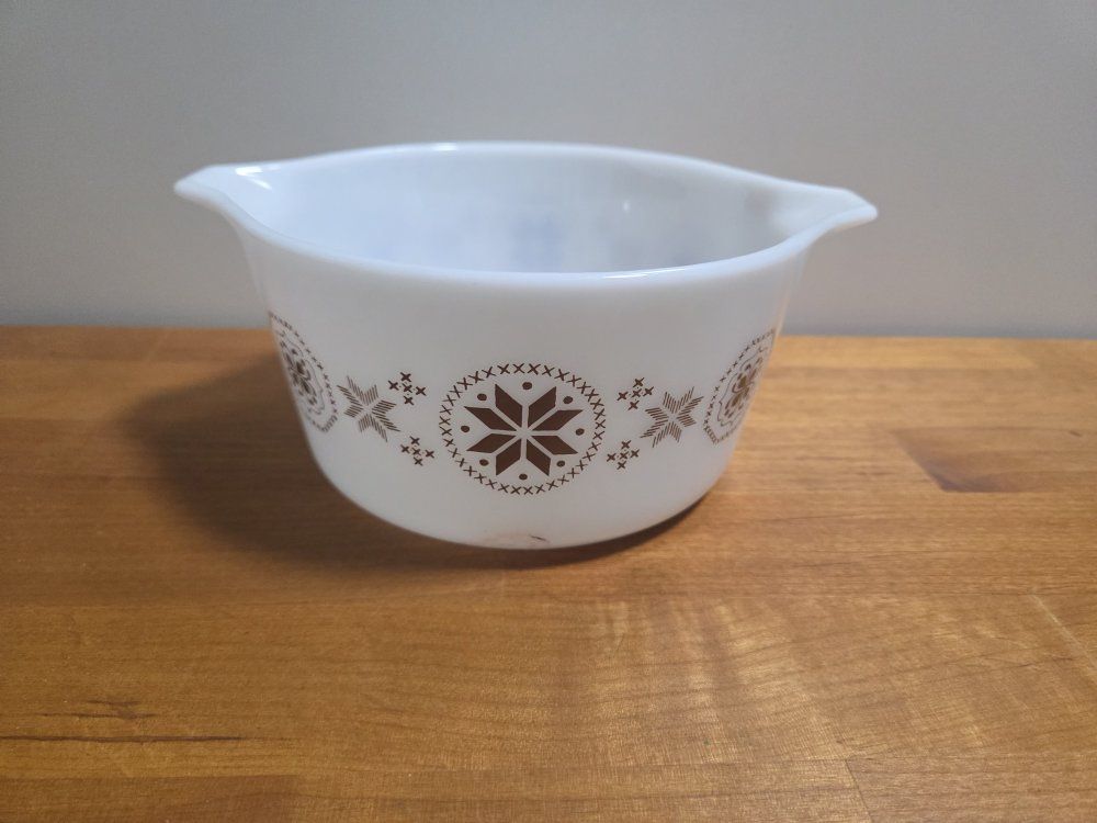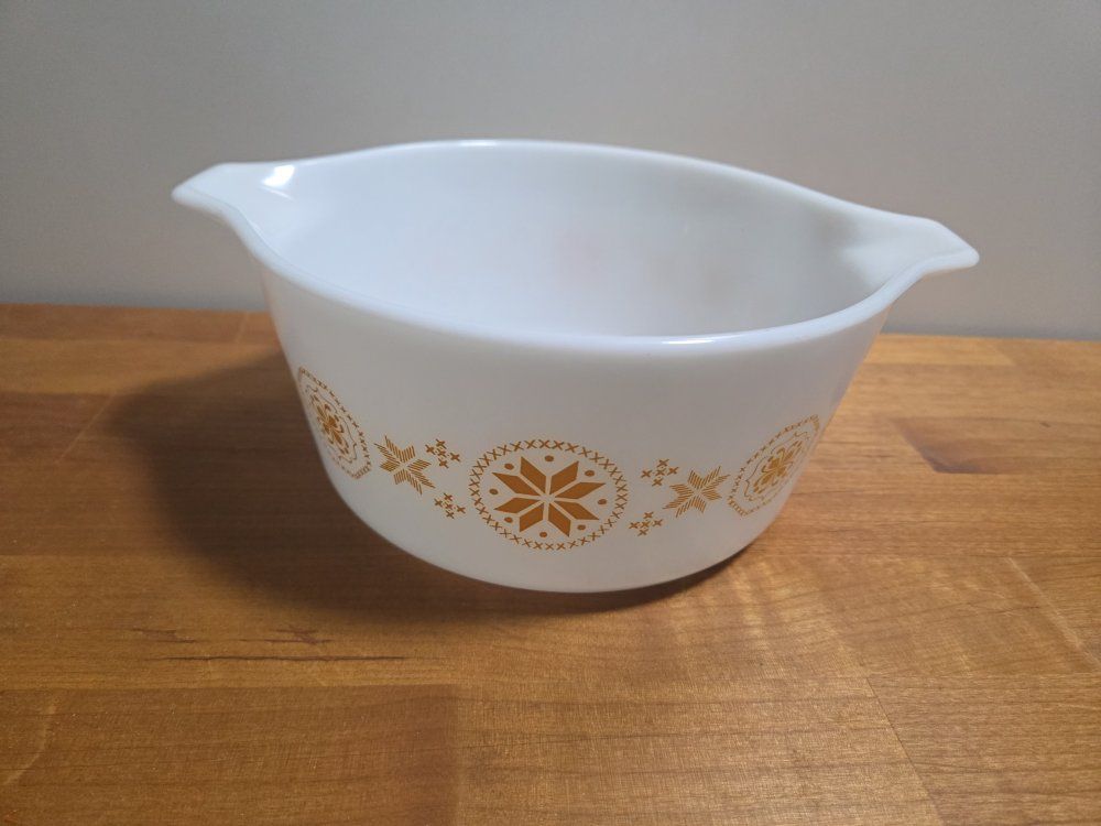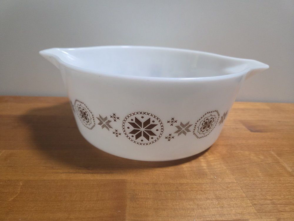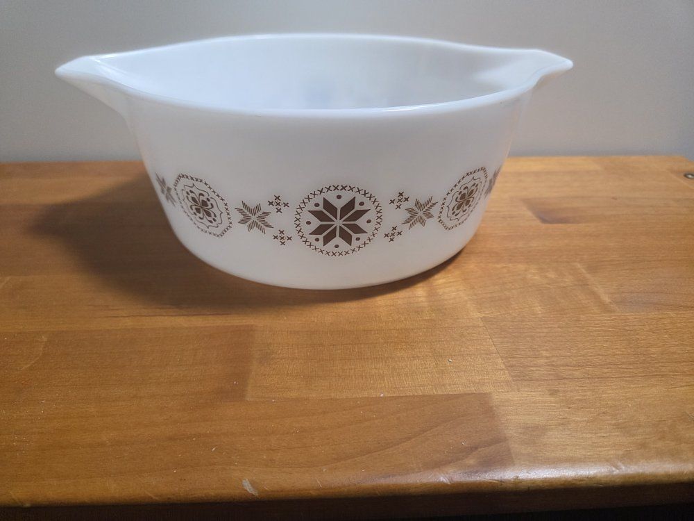 vintage pyrex mcm town and country glass cookware set for sale! Casserole is 2 1/2 quart with lid (lid has some slight scratches) medium pyrex 1 1/2 quart and small is 1 quart. No cracks or chips