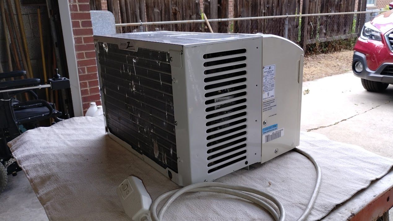 VenmoThis 5000 btu window mount air conditioner works fine and blows plenty of cold air. Dimensions are 17.5" wide, 11.5" tall, 13.25" deep.