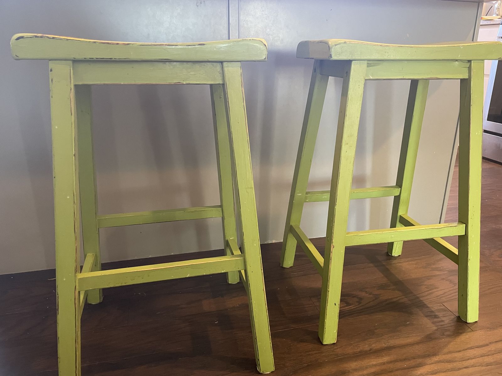 Venmovintage pistachio farmhouse barstools. $40 for both. Call or text Andy at 801-671-0480.