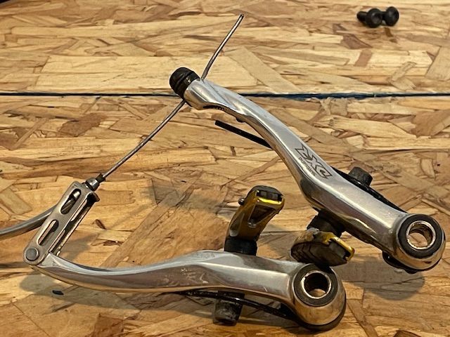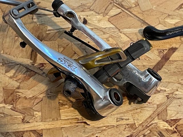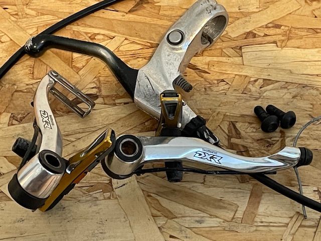 PayPalShimano DXR BMX brake set. Right hand lever, rear vee rim brake. Includes cable and housing. Lever is scratched and has some play. Everything works. Pads still in good condition. $30 picked up in SLC. Shipping at buyers expense.