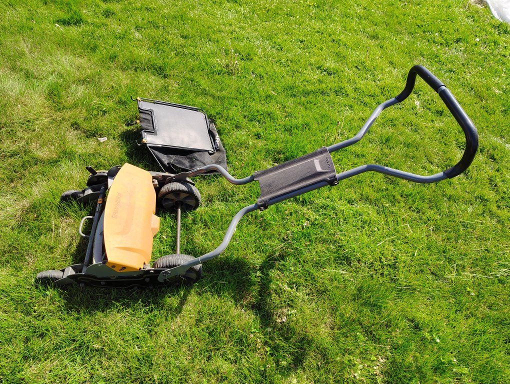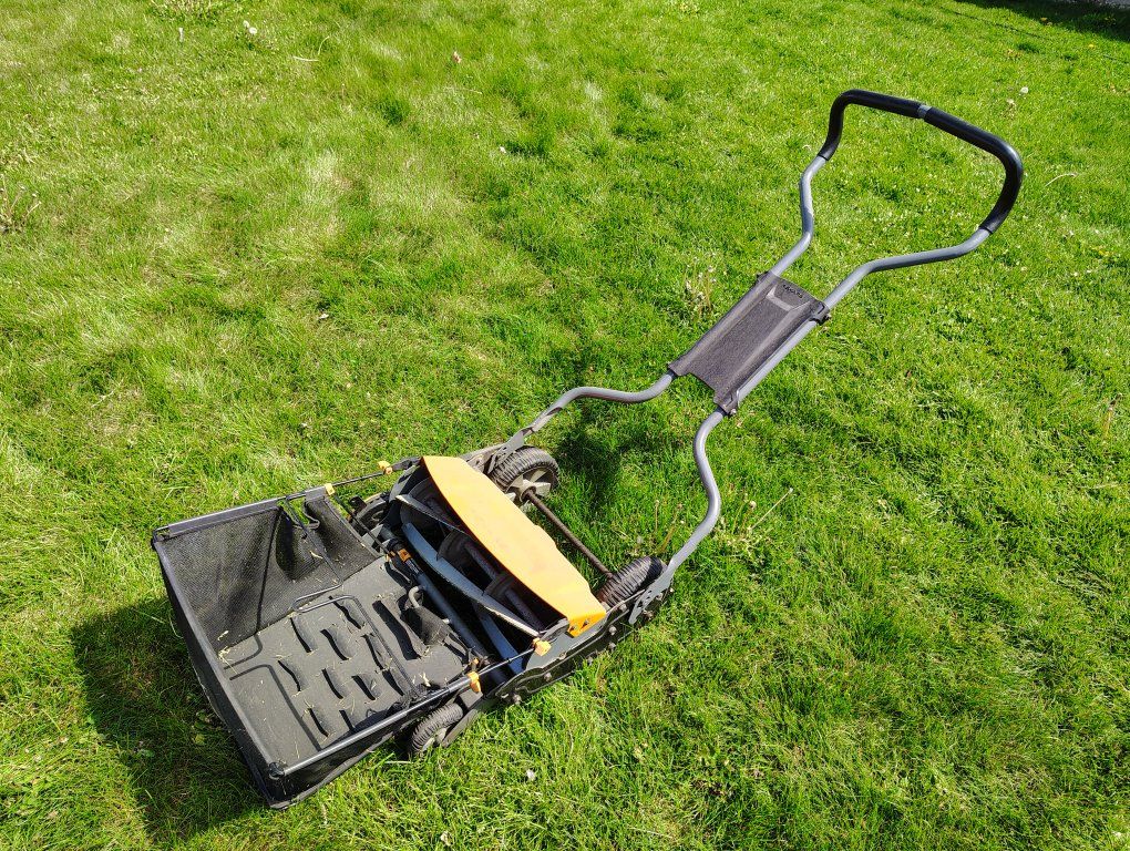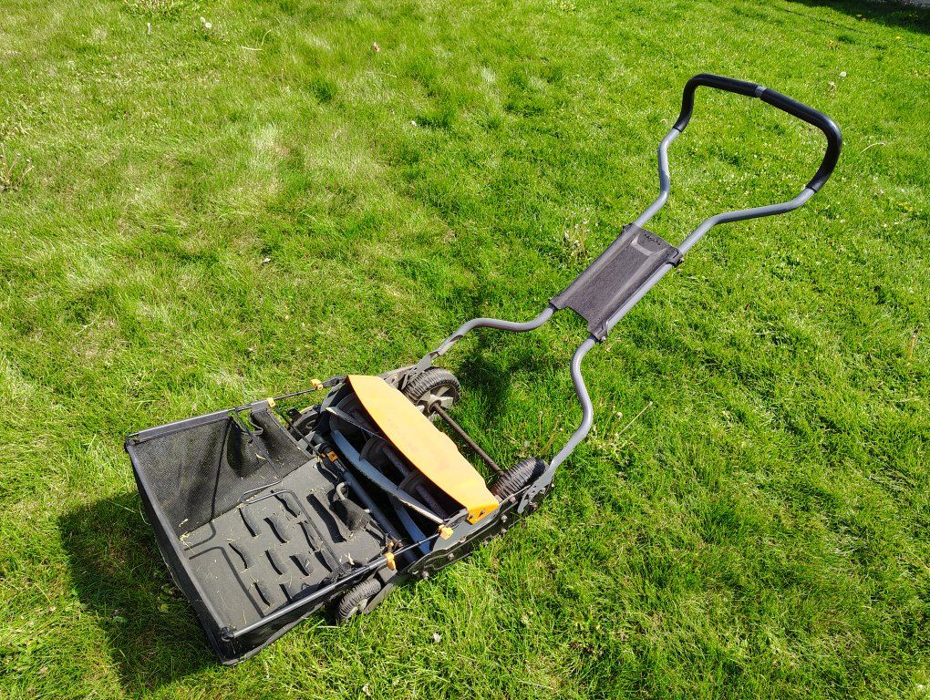Do note that this type of mower does struggle a bit with super thick weeds and tall dandelions or grass (they might just bend instead of cut)so it's recommended to keep things shortish on the regular. Cutting those can be done but takes more effort and time. (My husband would go around afterwards with a weedwhacker for the more bendy big dandelions.)
