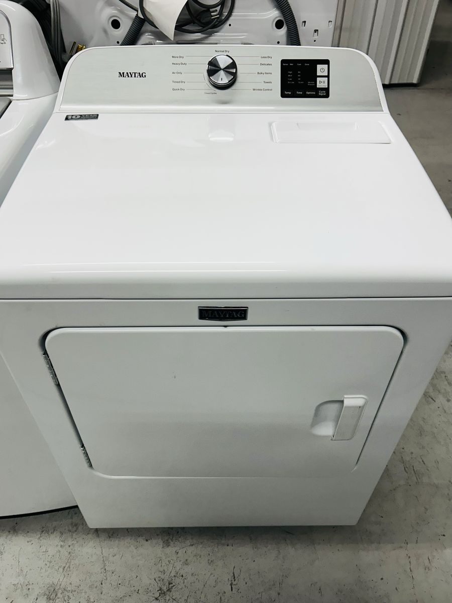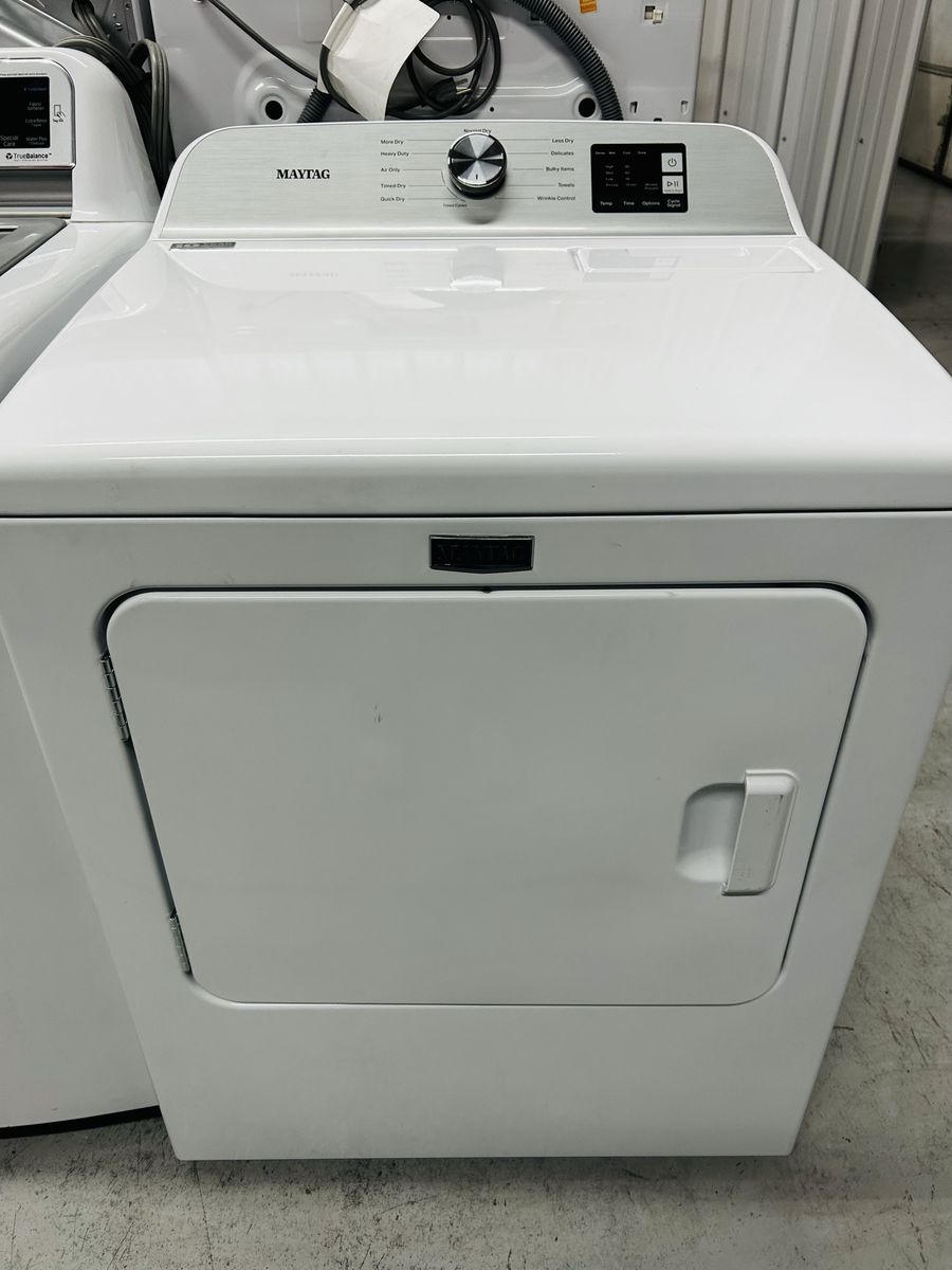 Maytag dryer electric super capacity heavy duty time dry air only quick dry delicate bulky items towels wrinkle control wrinkle prevent normal etc..Brand New. 2025 Model. 45 day warranty, delivery/install available.
