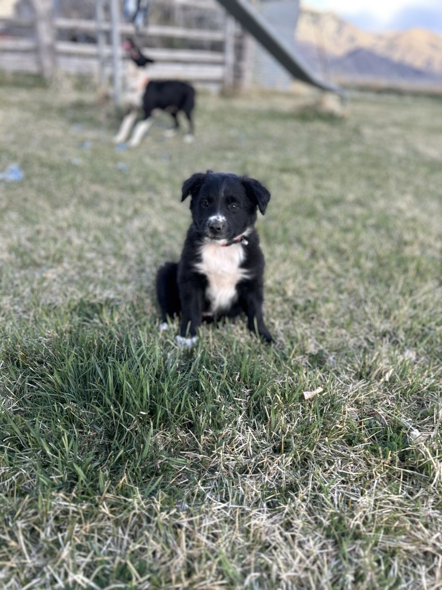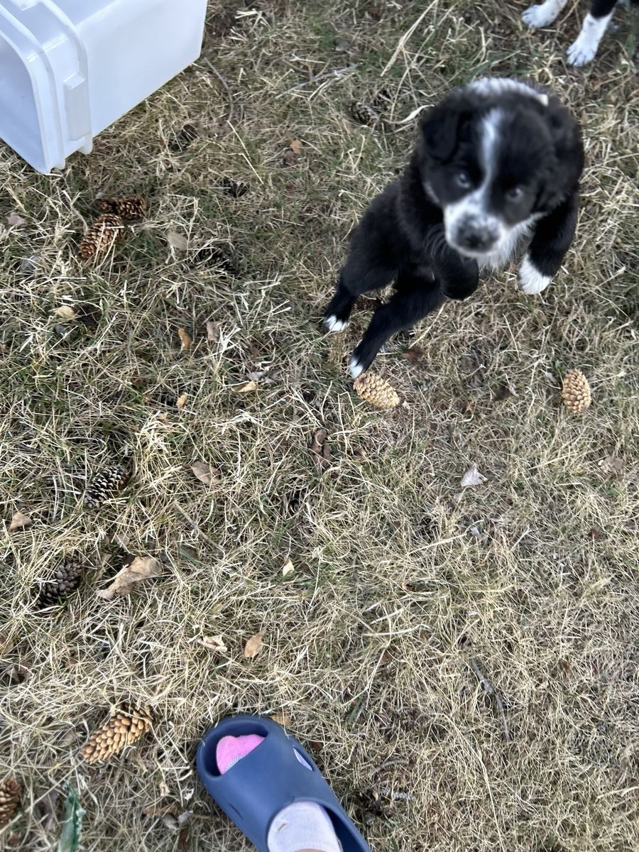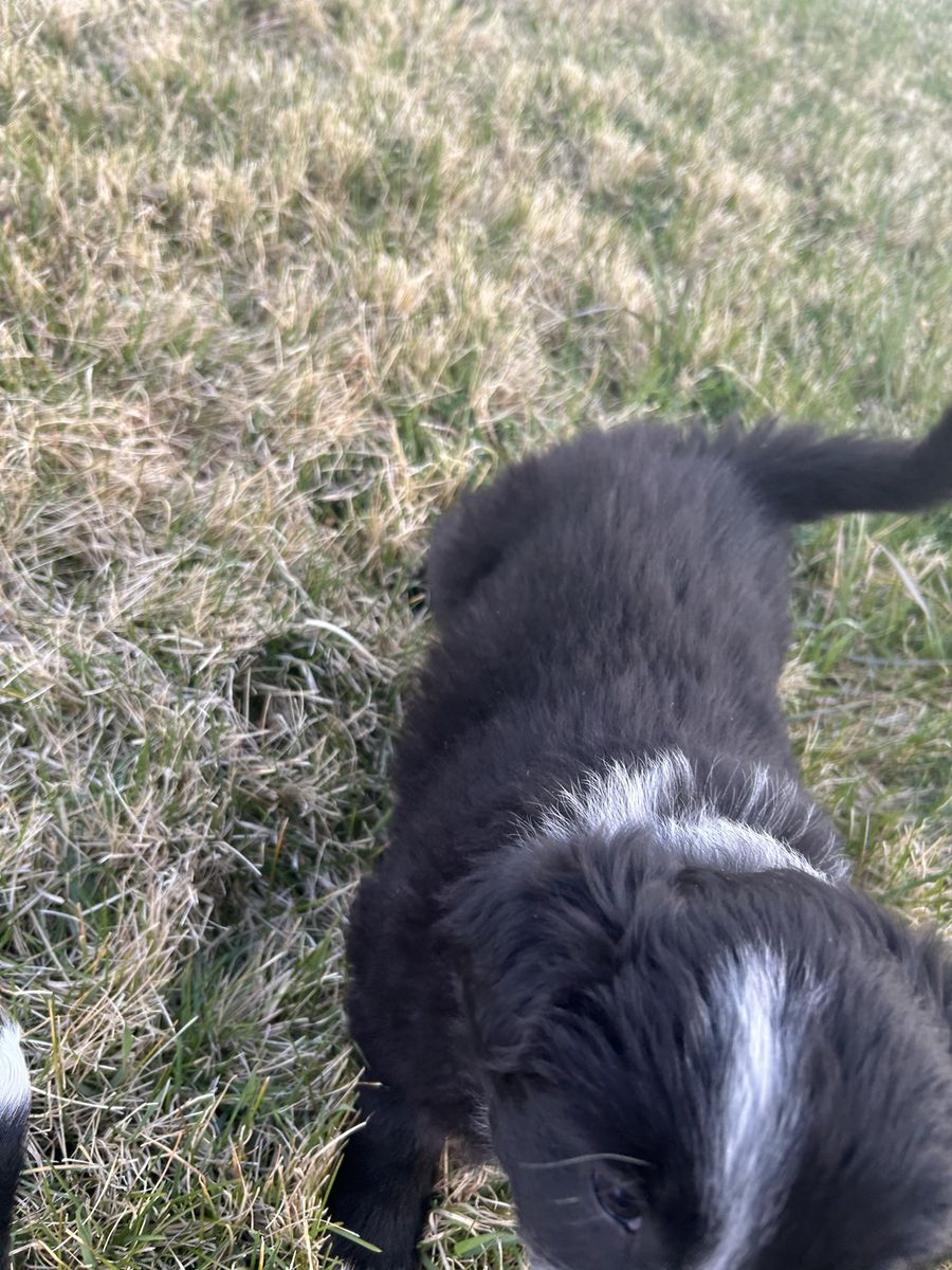 There are five males and one female They were born February 17, 2026. Some are fluffier than others. The last two images are the sire/father and the dam/mother. Call or text 208-604–2079 for more information. Located in Moore.