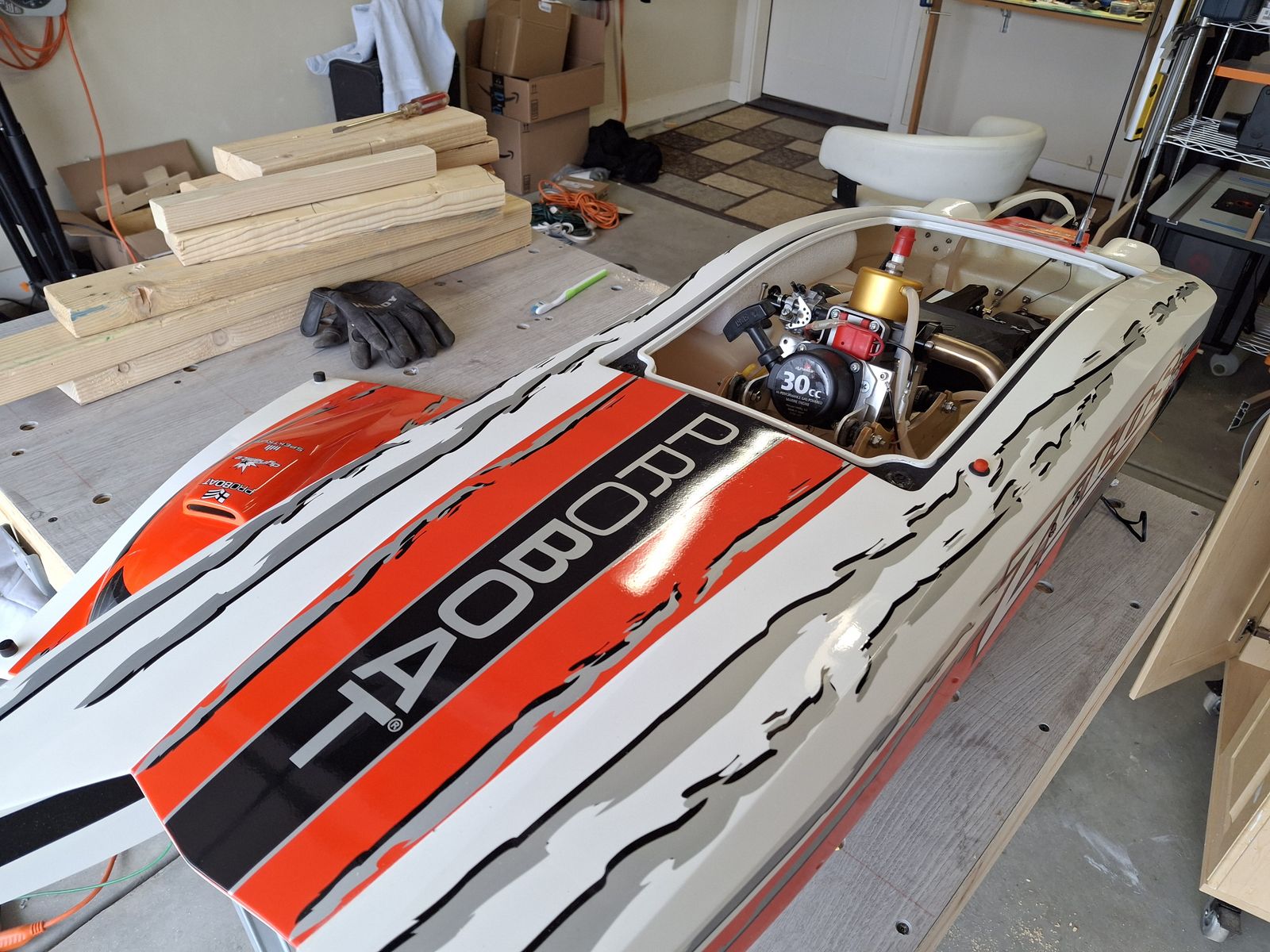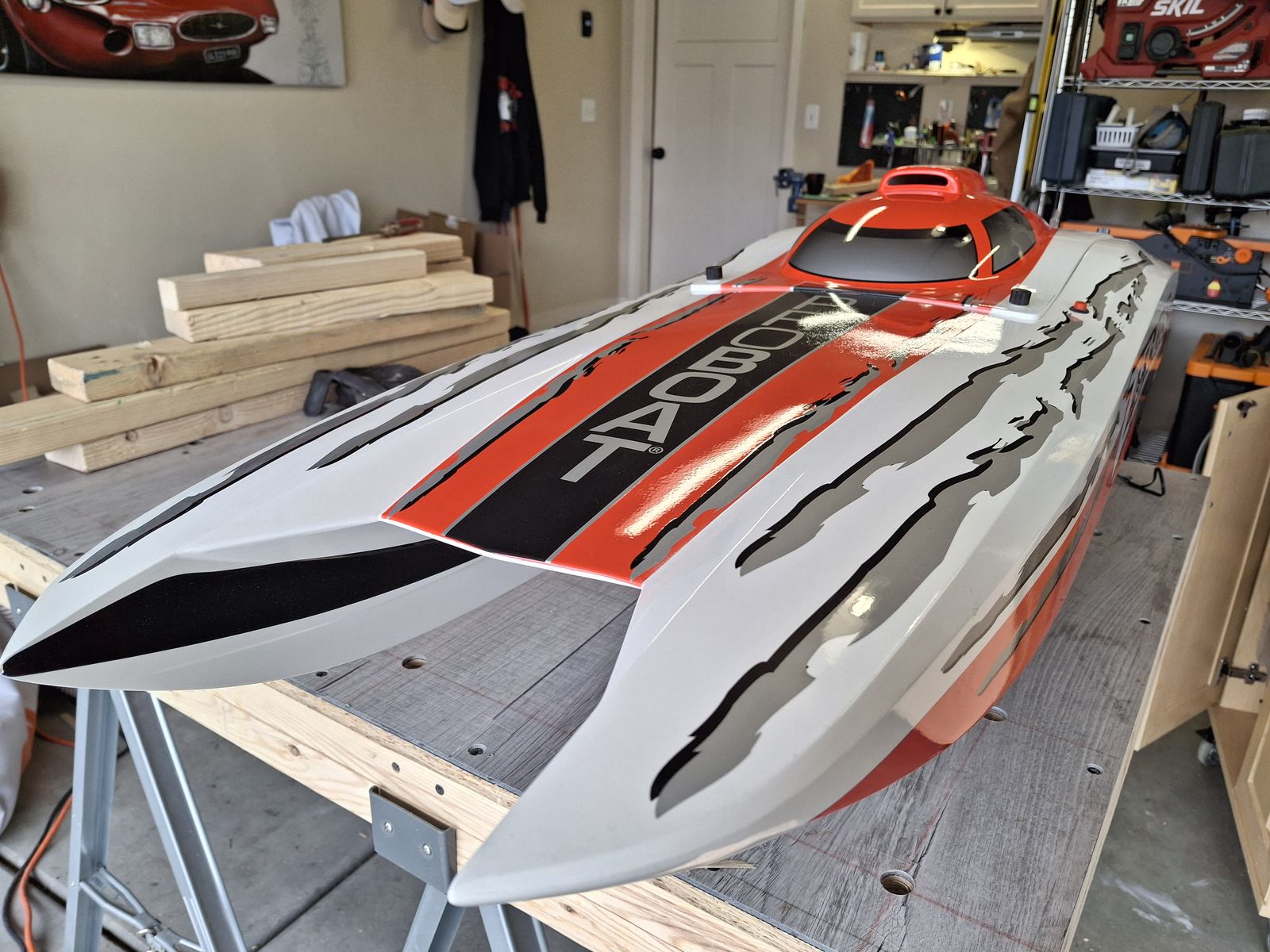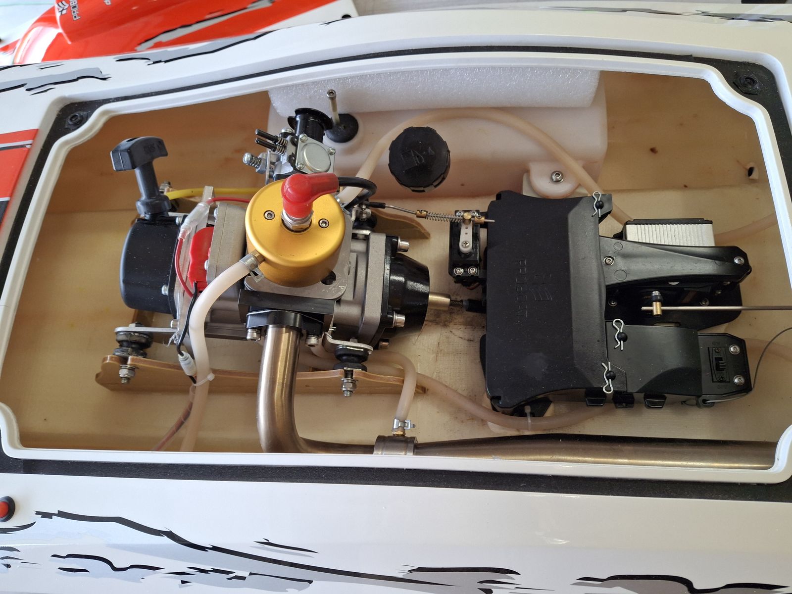 This is the 48" Gasoline powered Zelos G Catamaran by Pro Boat. Speeds to 50+ MPH. Included with the boat is a wood stand. Dynamite® Zenoah G300PUM 30cc gas engine.