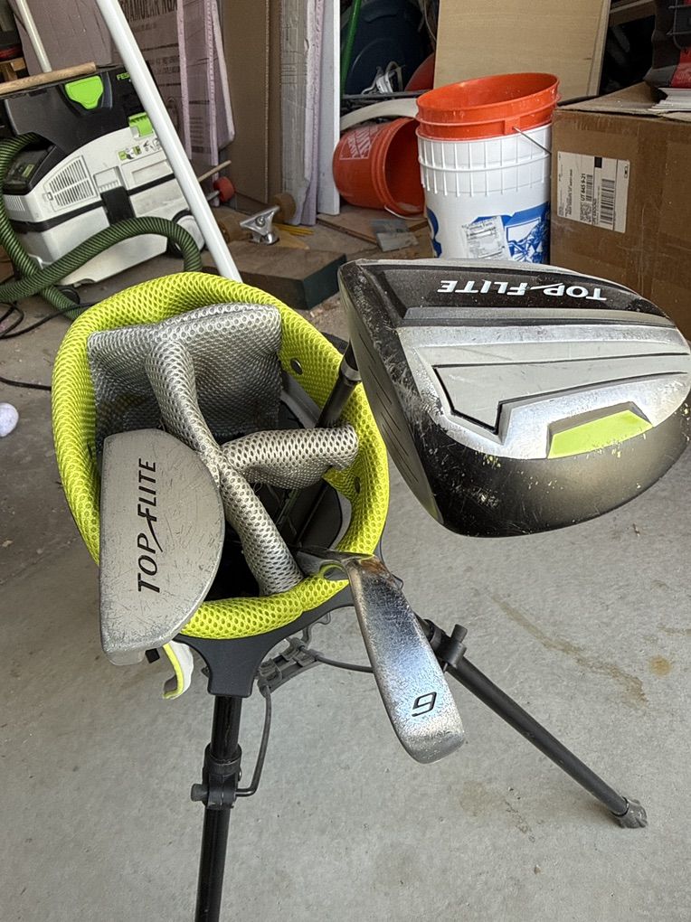 Top Flite little kids golf set. This is the set sized for 2-4 year old children. Includes Putter, 9 iron, Driver and bag.