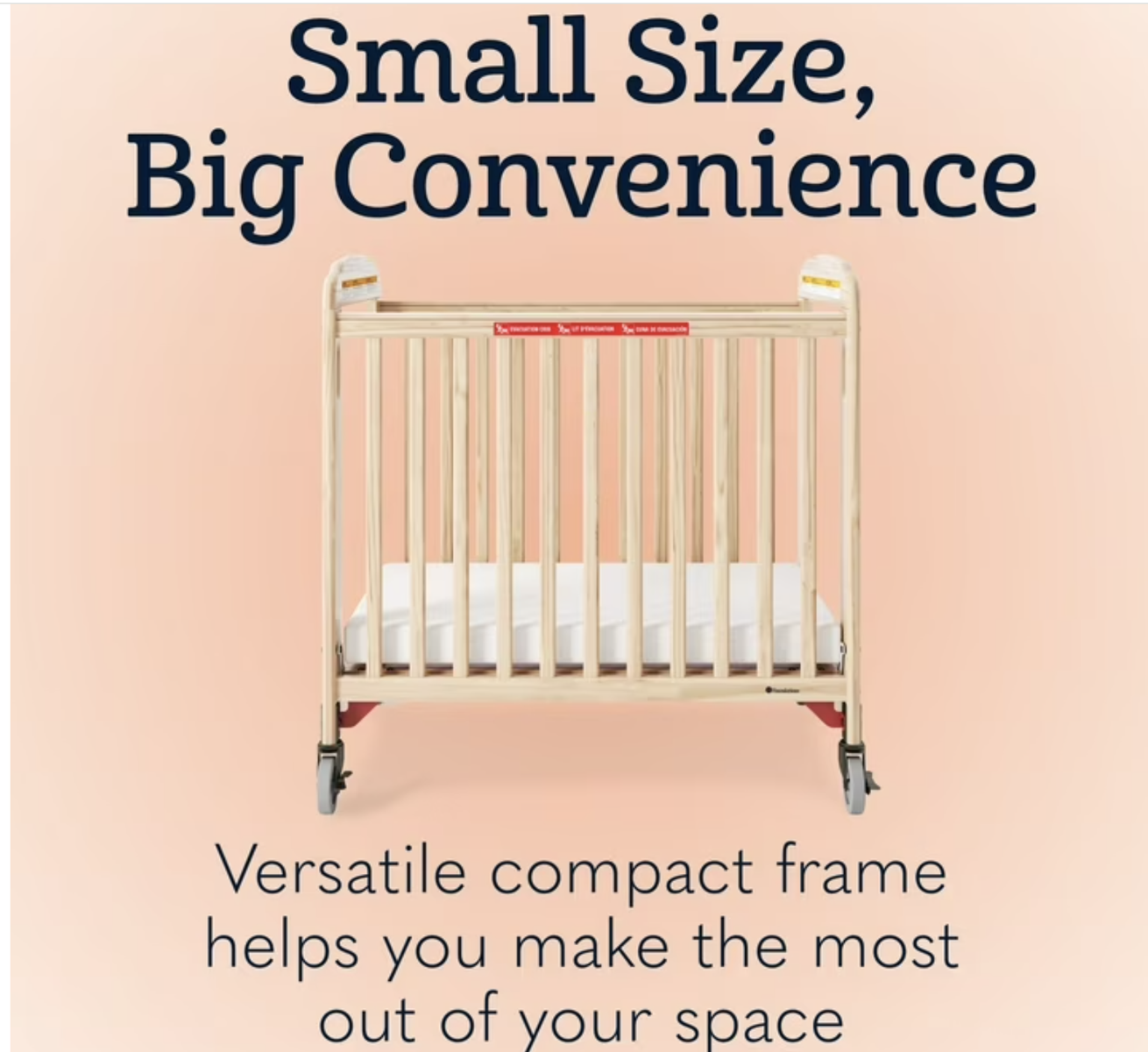 Brand new in box unassembled, Foundations Next Gen Compact Portable Mini Crib, 3" Mattress Included, Natural