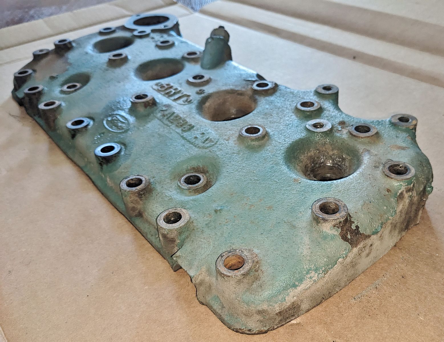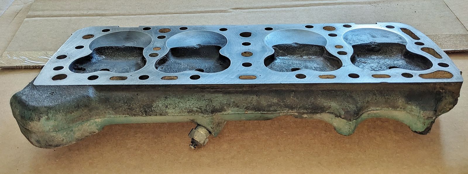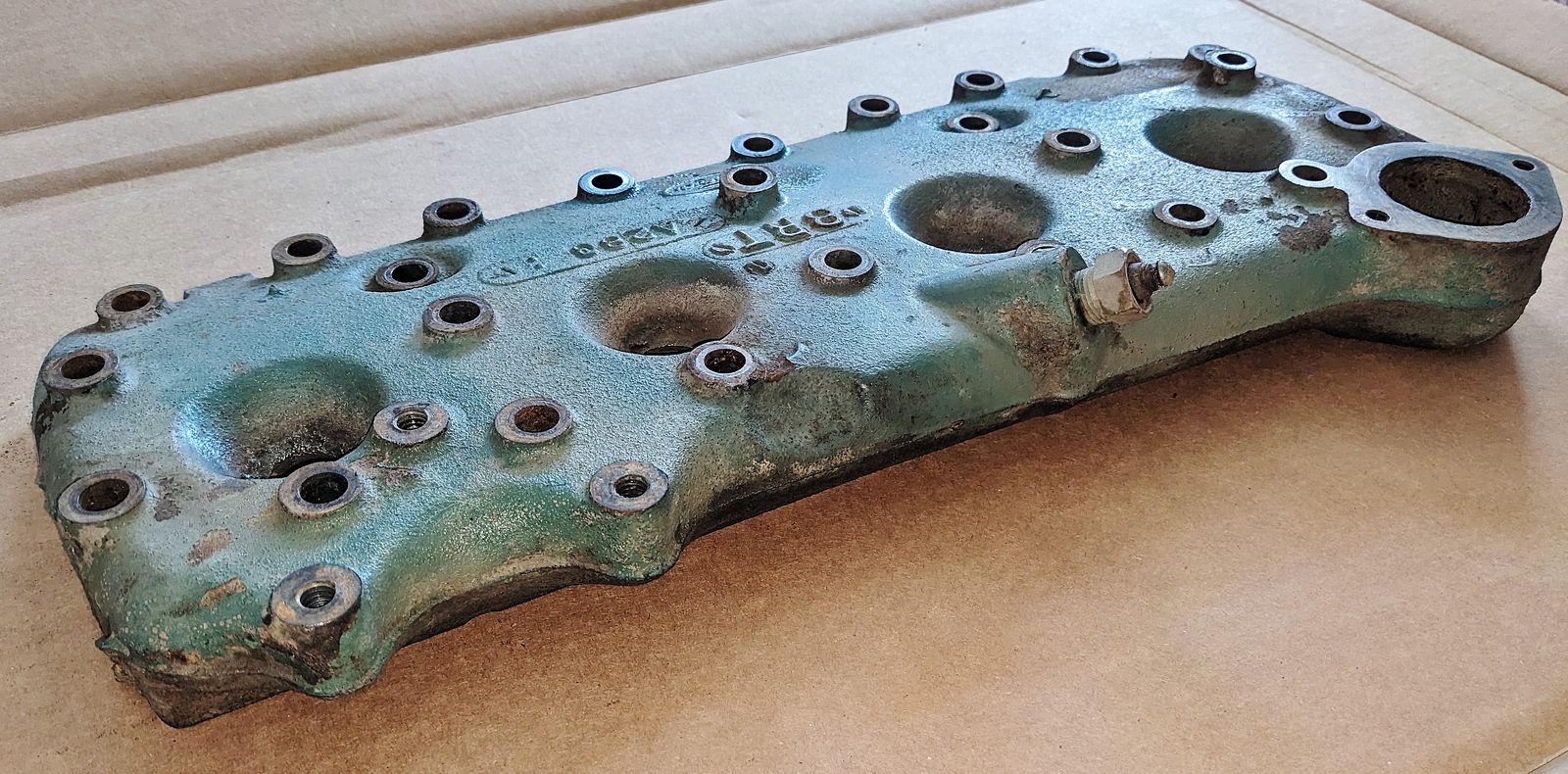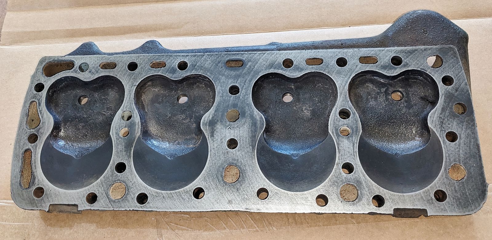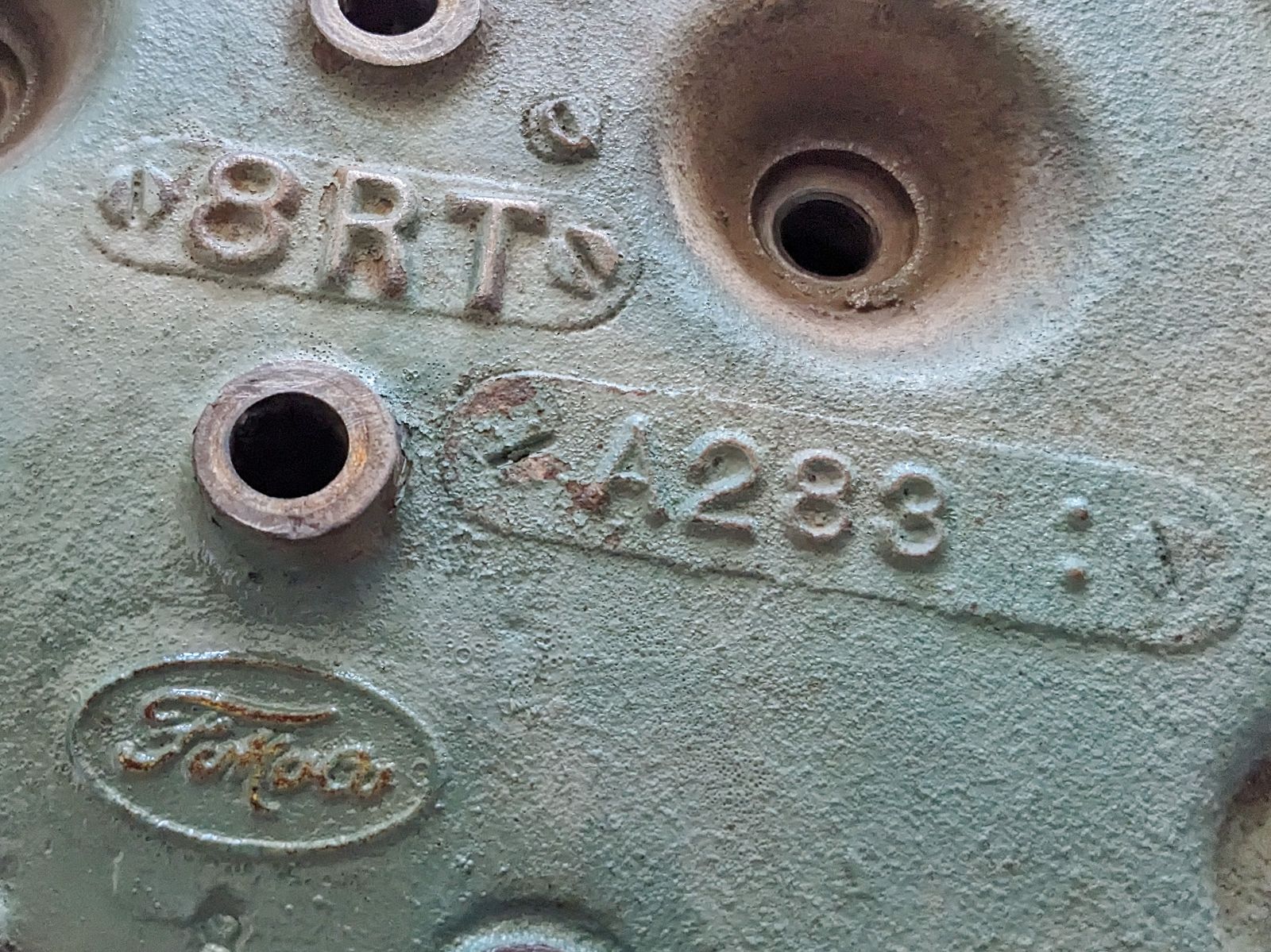 ZelleThis is a Ford 8RT flathead cylinder head date code A283, part number research online say for 1948-1953 Ford truck flathead engines. (Driver side) It came from a running engine, clean condition, bolt holes good, spark plug hole threads good, no cracks or outward damage noted - carefully check out all of the photos.