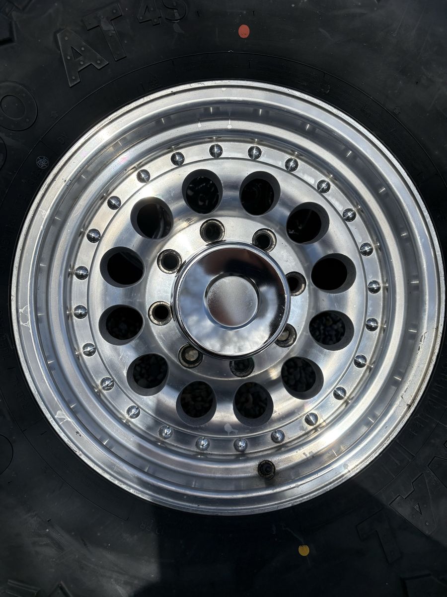 Brand new never driven 285/75r16 National commando at4s tires on bullet hole 16” rims