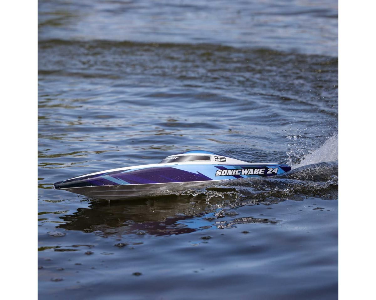 VenmoPro Boat Sonicwake 24" Self-Righting RTR Deep-V Brushless Boat. Brushless Performance, Self-Righting Convenience, Streamlined molded ABS hull with double-sealed canopy,
