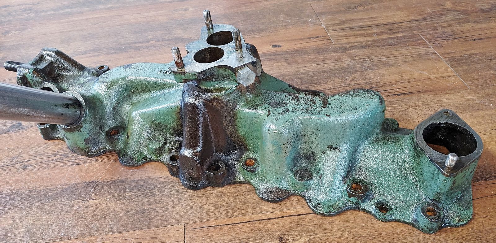 ZelleThis is an OEM Ford 8BA 8RT flathead intake manifold, part number research online say for 1948-1953 Ford flathead engines, Includes breather and pipe.