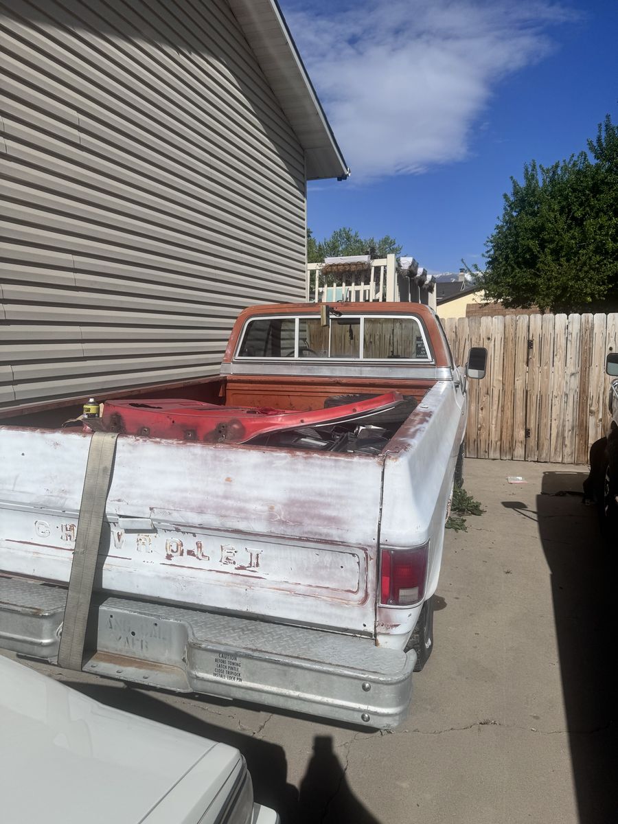 1975 C-10 project for trade or sale just don’t have much time to work on it anymore it comes with lots of parts for it has a working transmission but no motor will need to be towed 8012006620