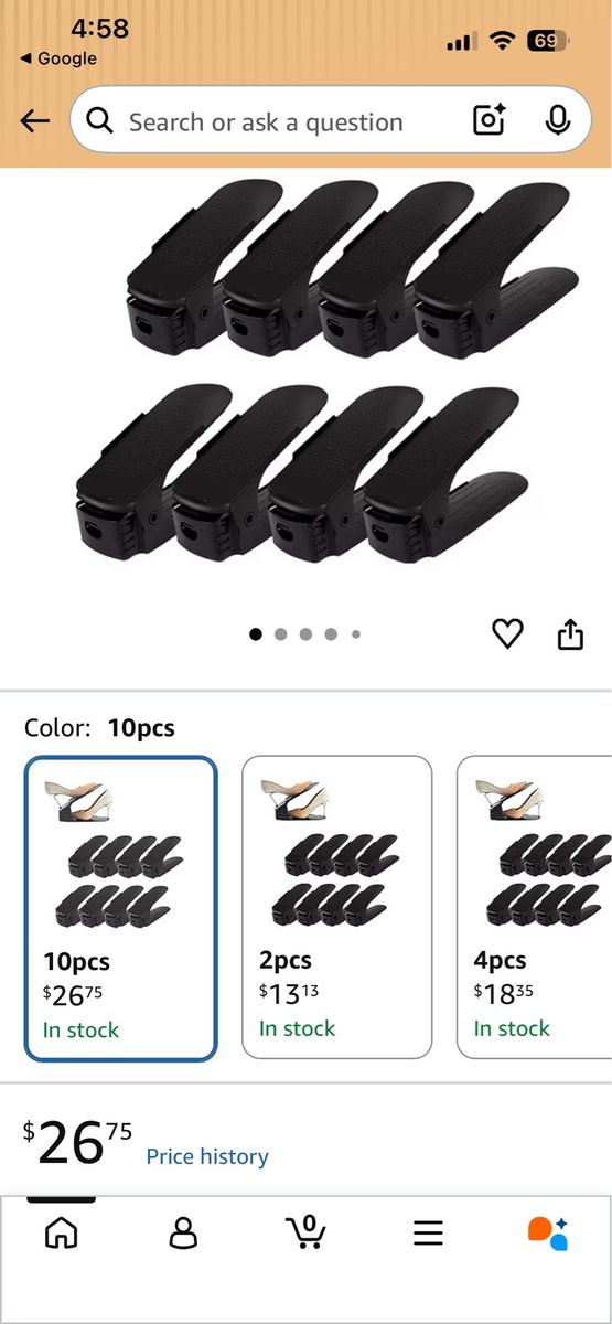 VenmoLike new 20 adjustable shoe organizer racks in black plastic. Clean smoke free. Cash or Venmo. Located in and picked up from Alpine.