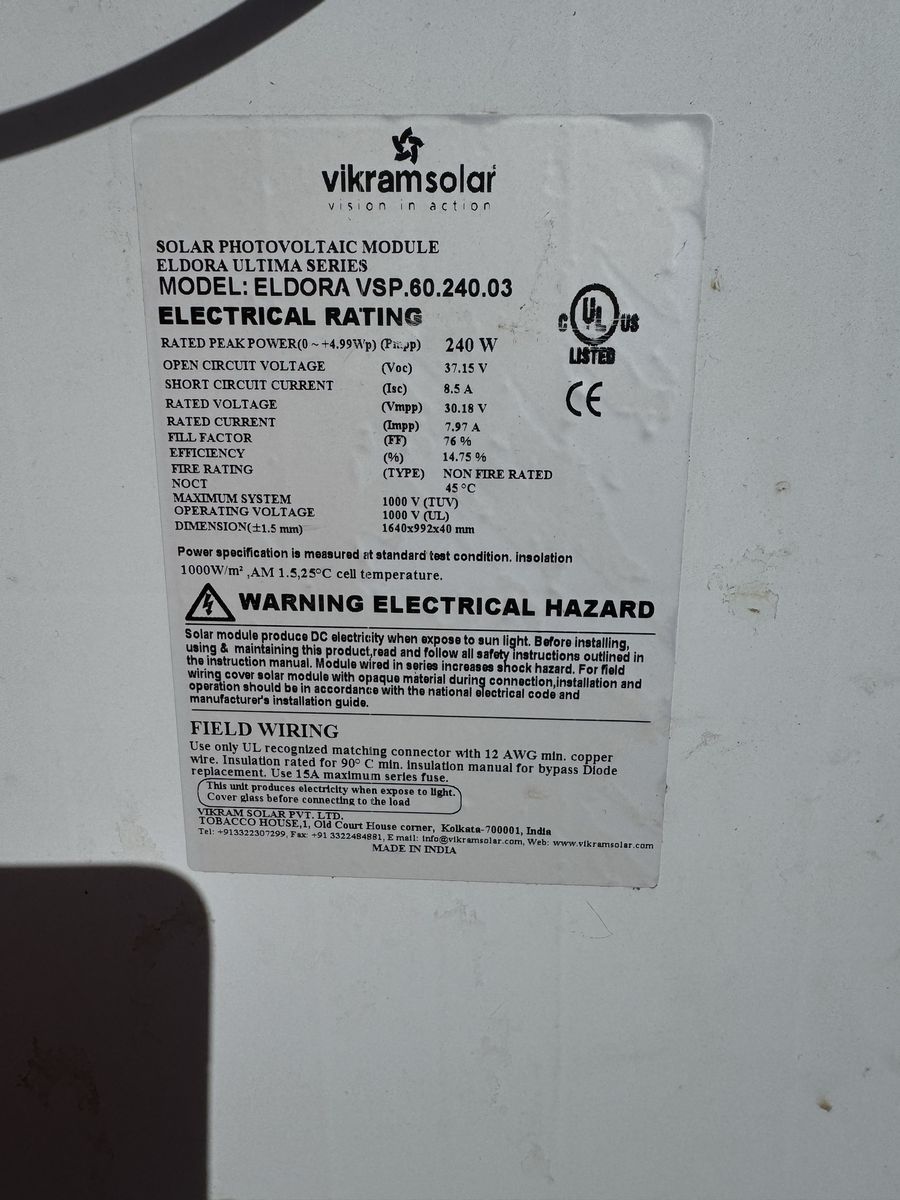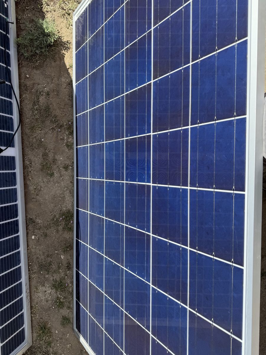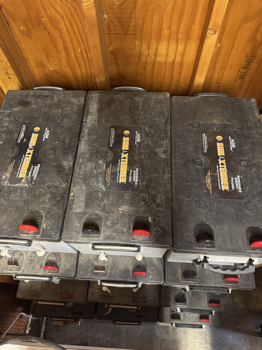 2 qty Bi-facial 450W solar modules. 2 qty mono-facial 240W solar modules. 2 qty mono-facial 240W solar modules. 12 qty AGM 258Ah 12V batteries. 3 qty battery enclosures. 1 MPPT charge controller Some aluminum roof racking. Some strut used to make a ground mounted rack that the bi-facial modules were attached to.