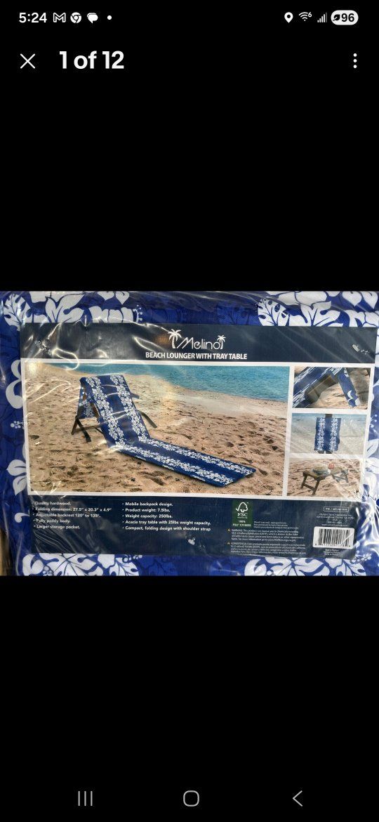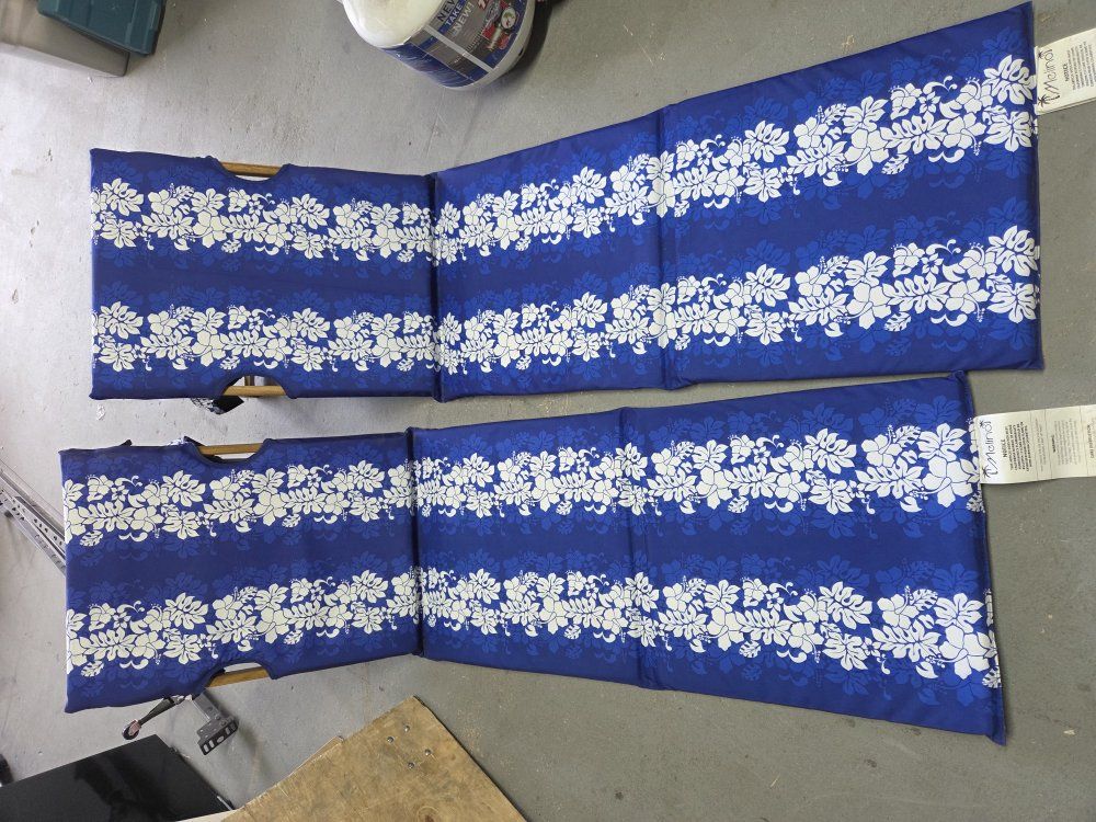 Cool Melino Beach Loungers with side tables. Used once and only on grass. Price is each.
