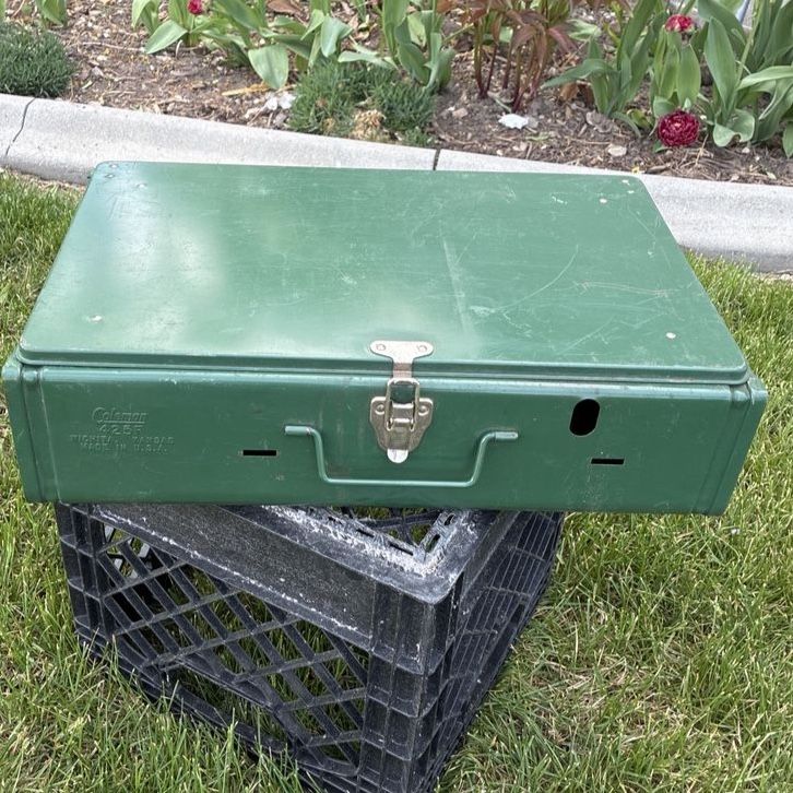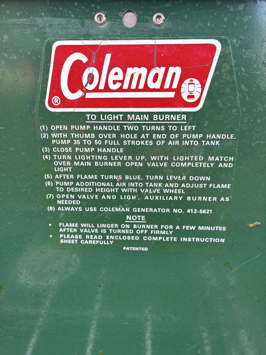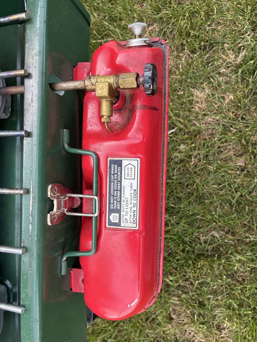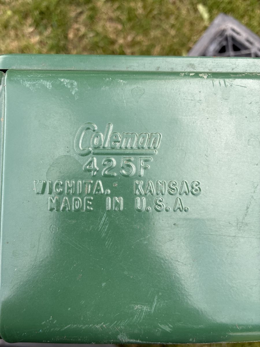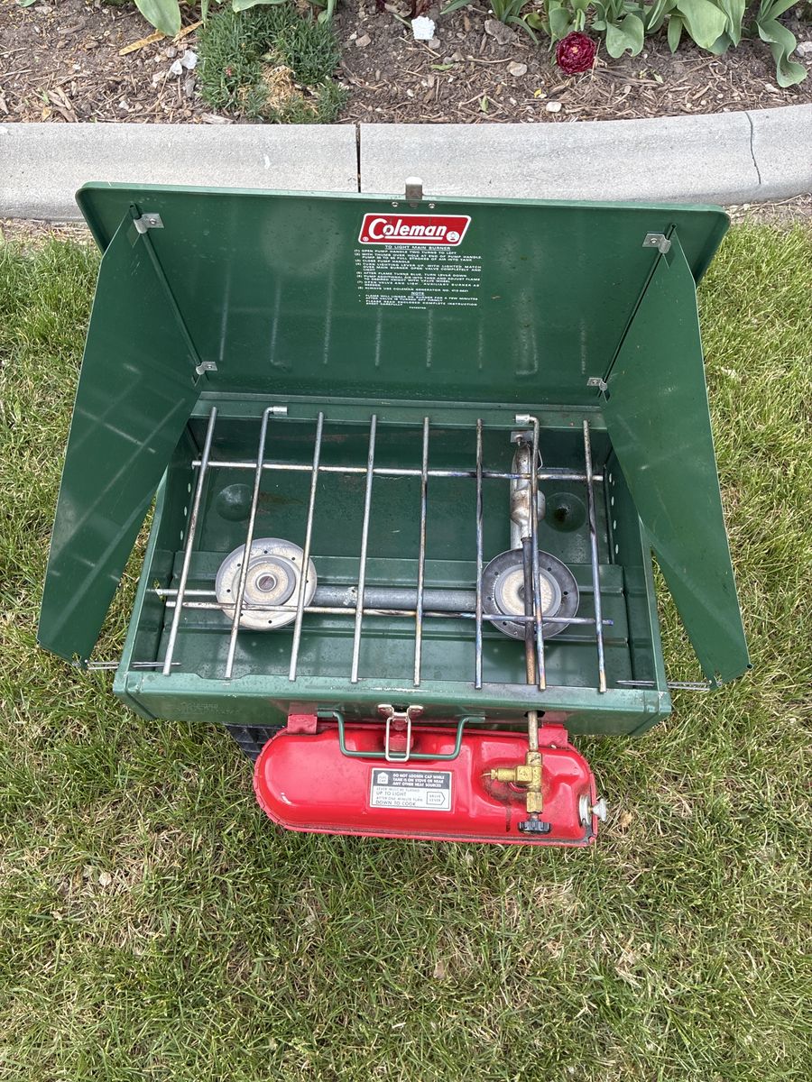 Vintage Coleman 425F 2 burner White Gas Stove. 2/1980 date stamp. Pumps up, lights easy and runs great. Ready for years of use. 25$