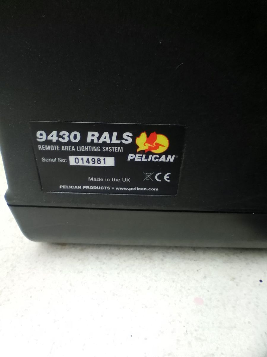 my pelican 9430 r a l s remote area lighting system has a new battery comes with original pelican charger works absolutely perfect zero issues whatsoever new these cost well over $1,000 save a ton get this one for a lot less I don't have a need for it anymore.