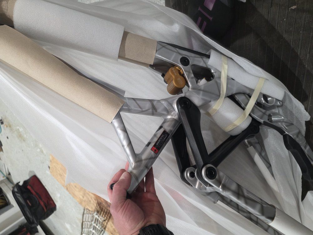 I bought this frame to build a downhill bike with my son. Unfortunately shortly after he was lifeflighted off the mountain and is a little gunshy now. New never been ridden price is obo