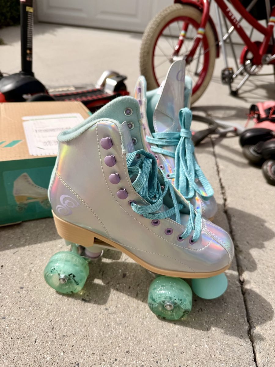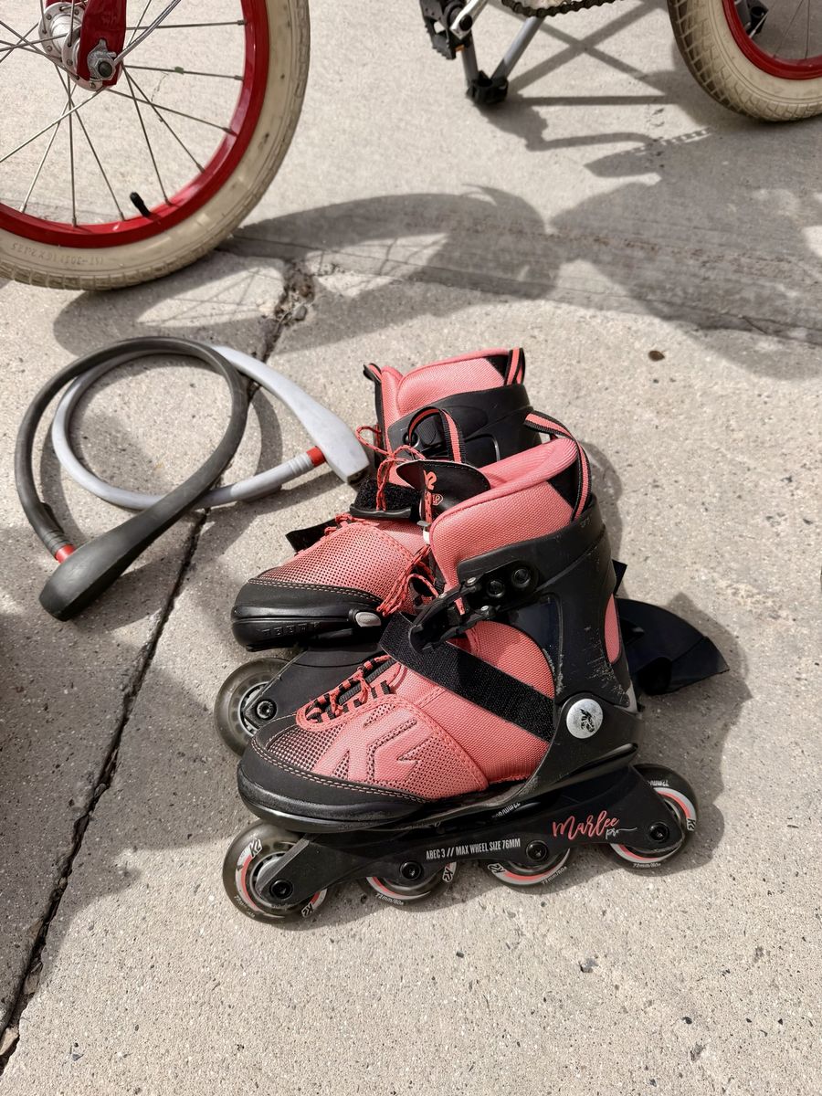 SKATES + SCOOTERS $40 — K2 Adjustable Inline Skates (Girls 1–5) (Retail $90) $60 — NEW Roller Derby Candi Grl Skates (Size 6) (Retail $90, new in box) $15 — Glider XL Scooter $15 — Razor Scooter