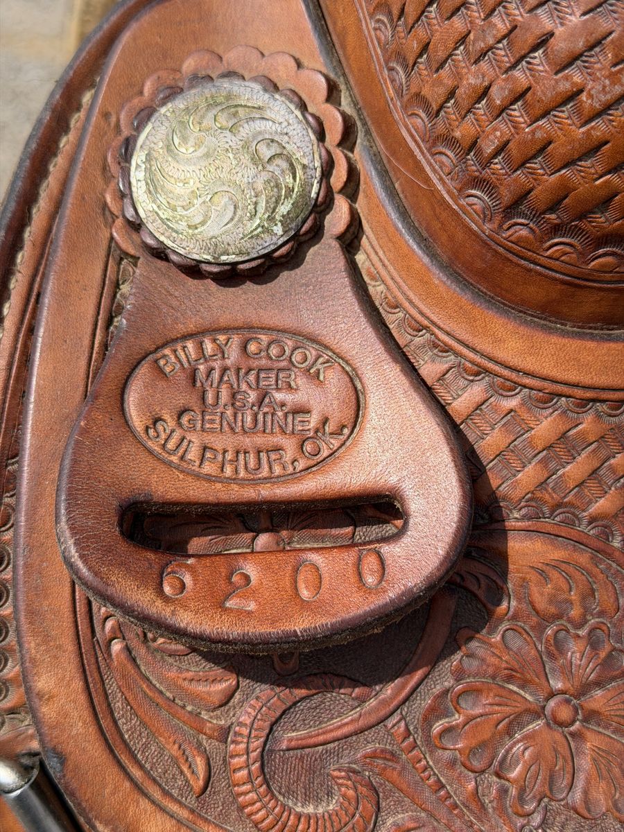 I have a very nice Billy cook reining saddle for sale. It’s super nice, very comfortable! The fenders are super nice, makes it easy to keep leg contact while riding. It has a 6 3/4" Gullet, with a 16" seat but padded to make it a 15.5" I’ll throw in an almost brand new neoprene shoulder relief cinch with it. I Just oiled and cleaned it up. I’m asking $1,600 obo *cash only!