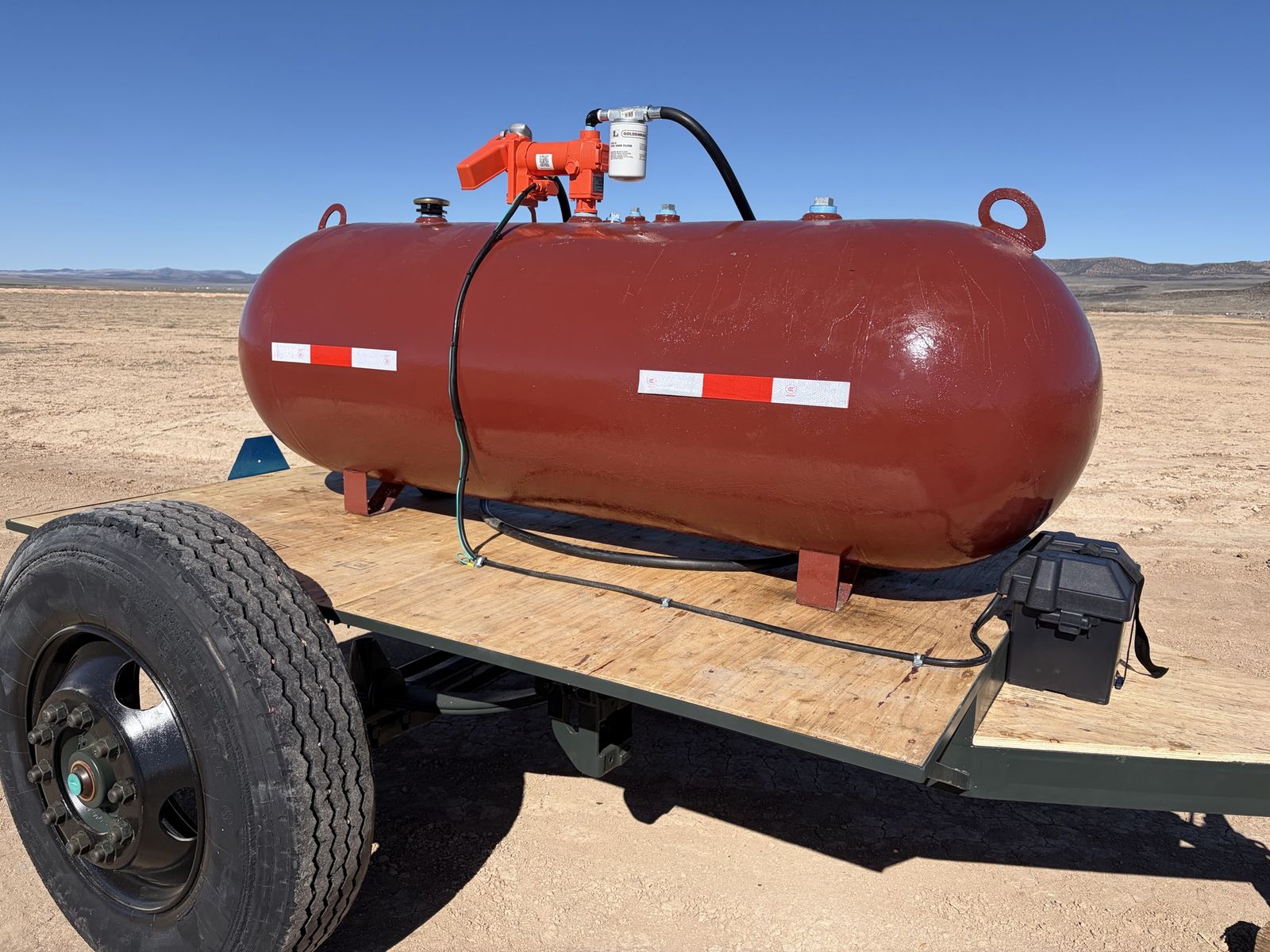 VenmoRestored 250 gallon Fuel Trailer. Was just completely gone through. New Electric 16gpm transfer pump, new 13ft hose & nozzle, new fill cap, filter & base. It’s a homemade trailer but it pulls great! Has a new deck, new adjustable coupler, new safety chains, serviced hubs, new lights and wiring, new battery box. The tires are old. But i have plans to put some good pull off’s on it soon. It mostly stays on the farm.