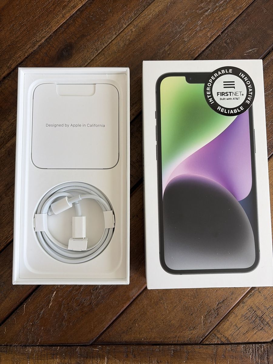 iPhone 14, 128GB, color midnight, 88% battery health, charging cord, two cases & extra screen protector.