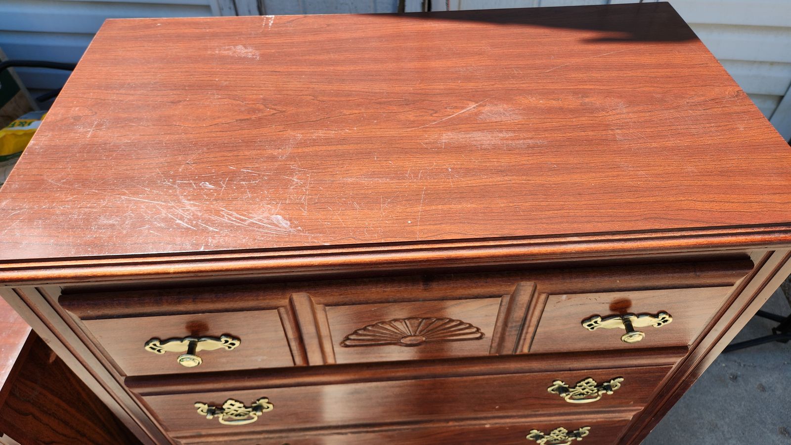 In overall good condition with a few blemishes on the side, and one drawer on the dresser sticks.