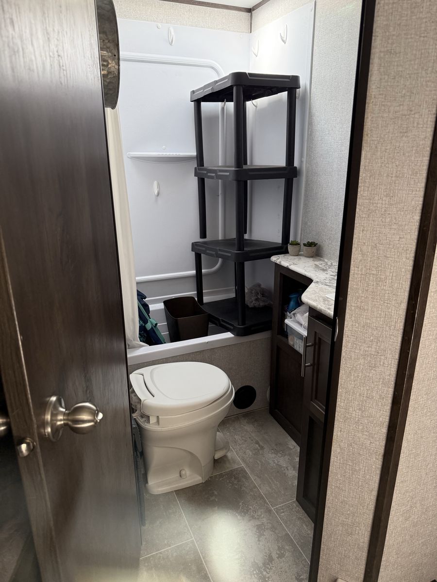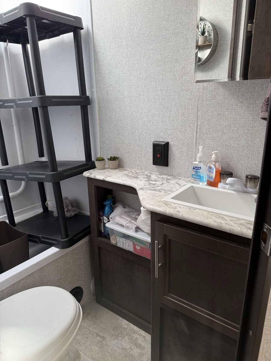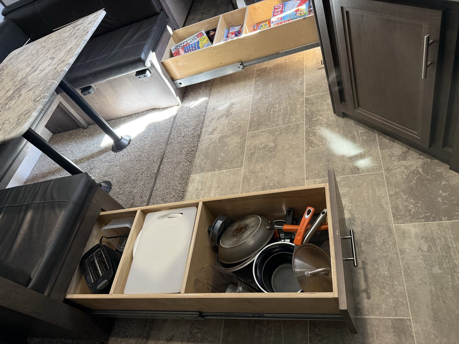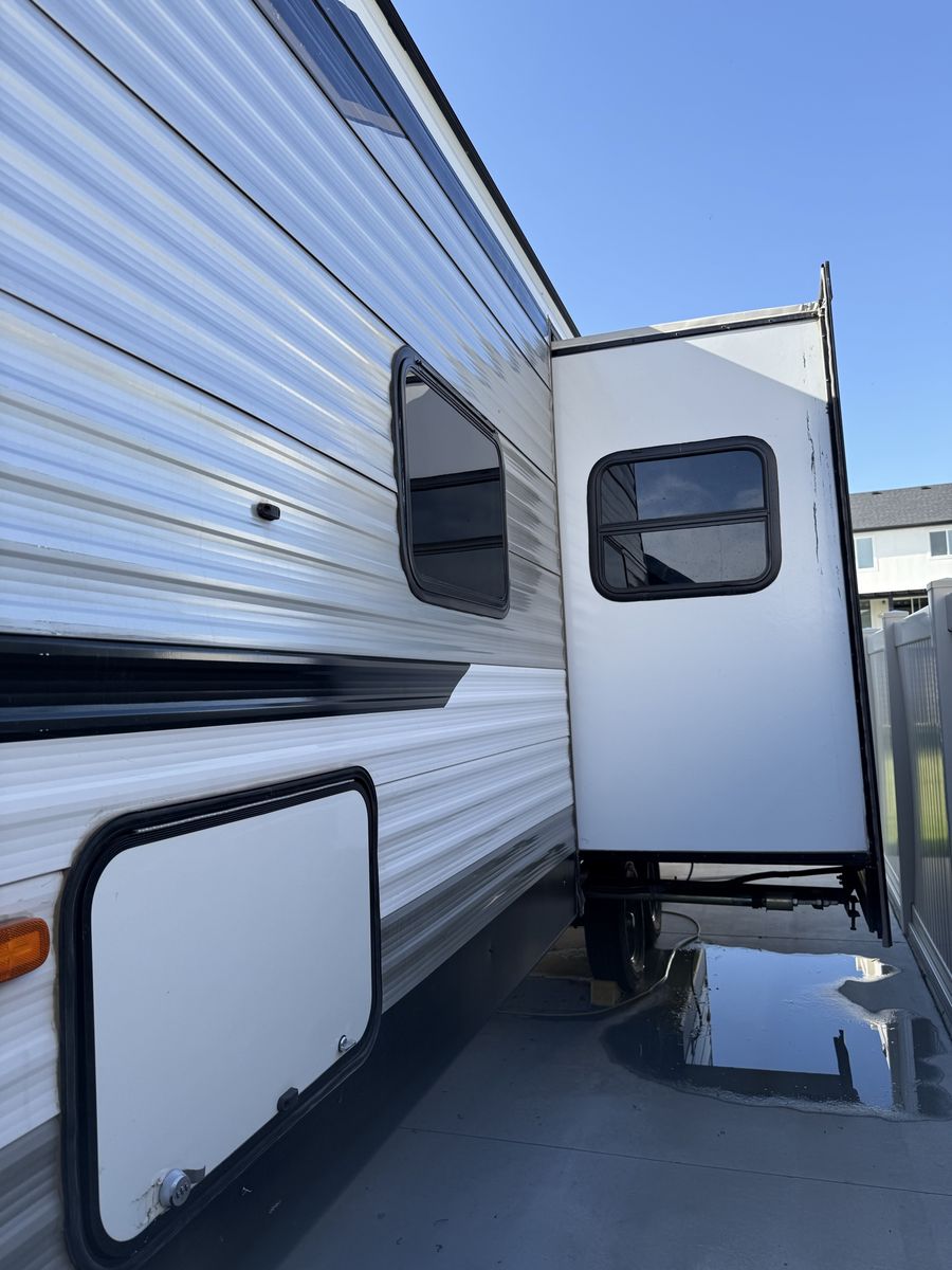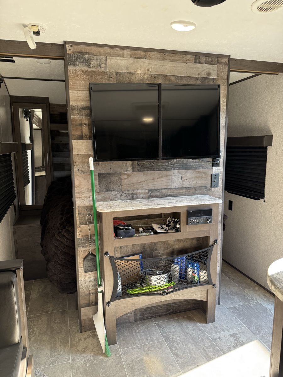 Powered items- tongue jack, front and rear stabilizer jacks, awning with LED lights.