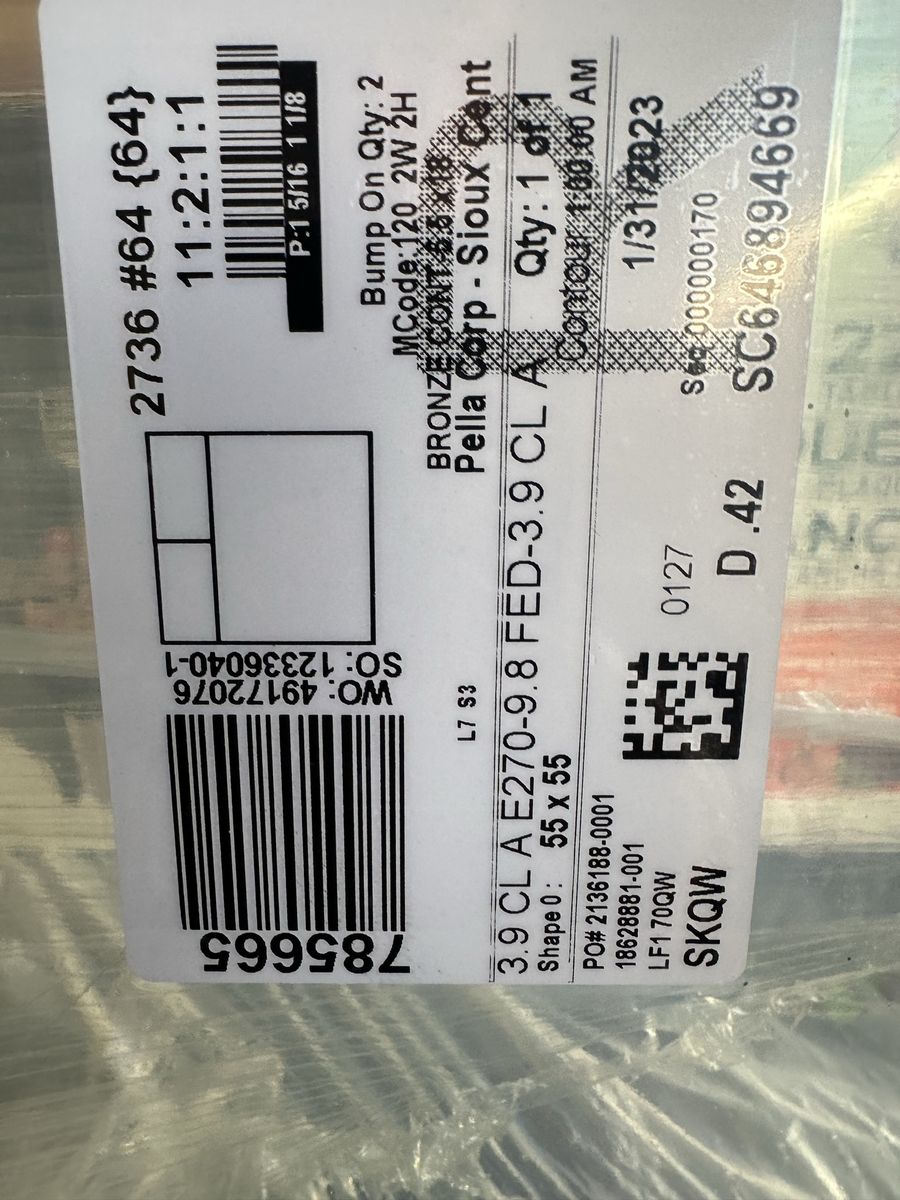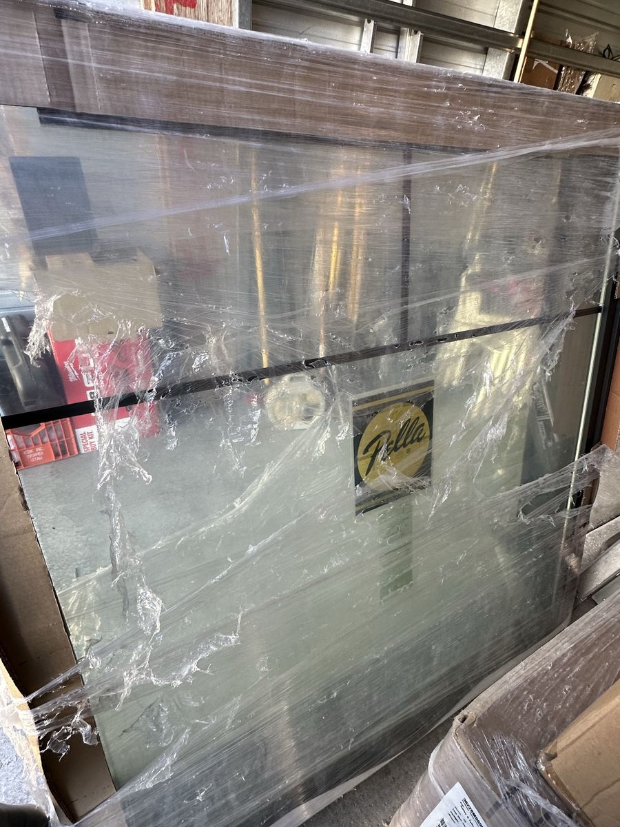 ZelleNew - 55”x55” - Alumaclad exterior / unfinished wood Interior, top row grilles between glass - brown / bronze color. $1000 - Best Offer.